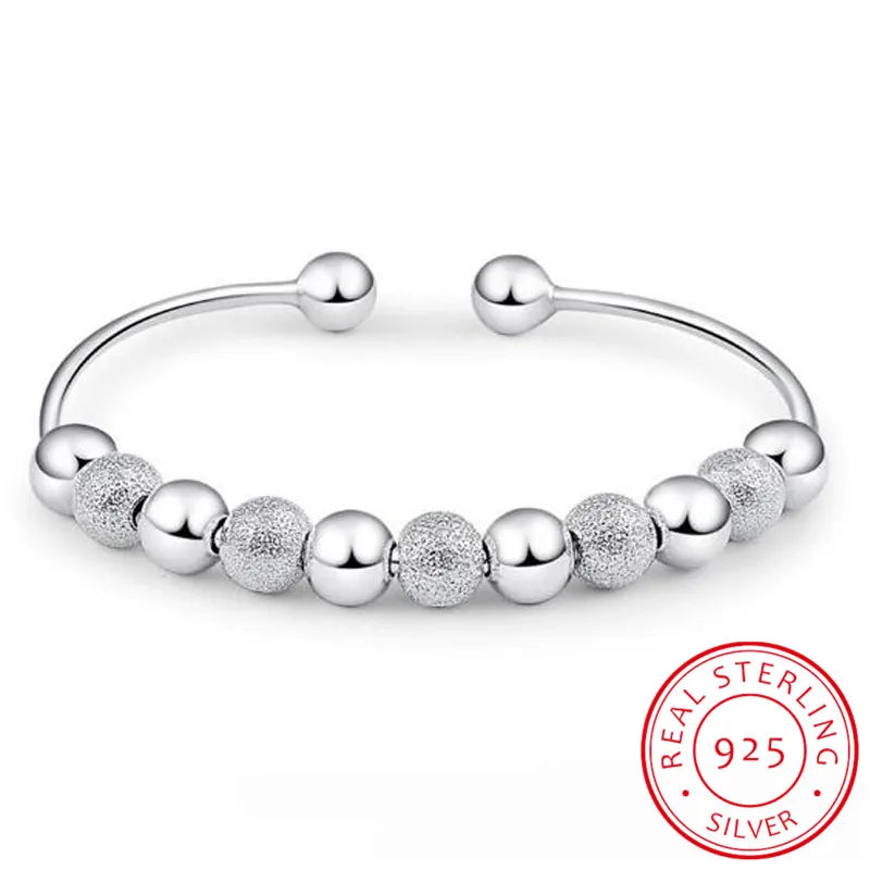 925 Silver Lucky Beads Bangles Open Cuff Bracelets for Women