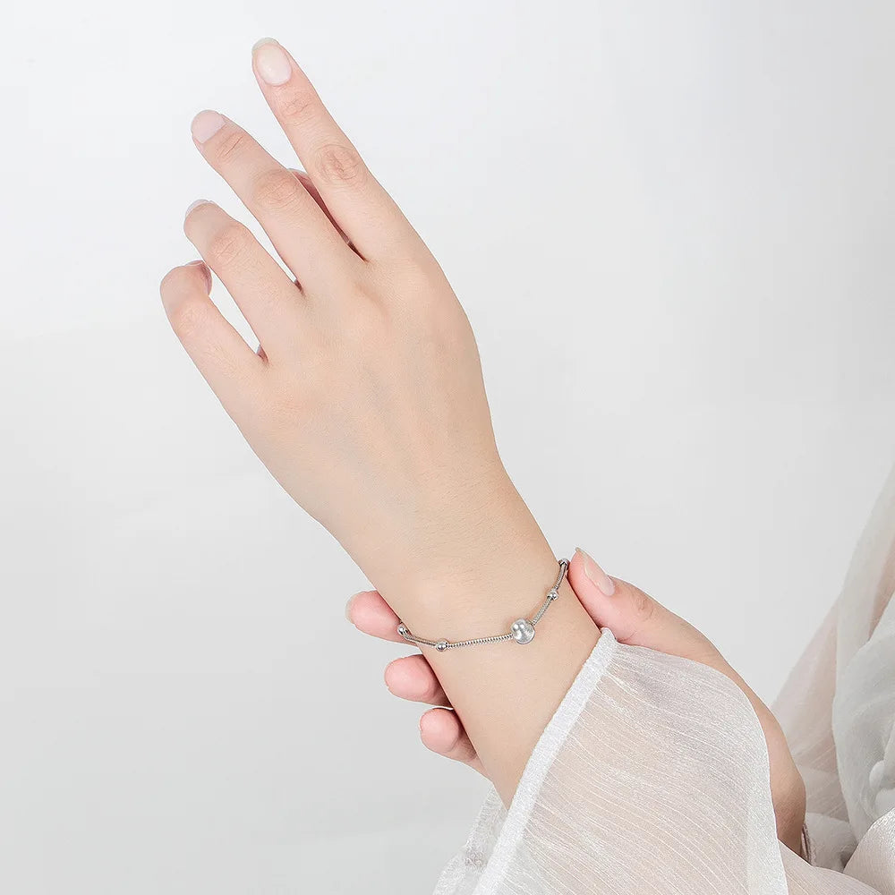 Elegantly crafted 925 sterling silver bracelet featuring lucky beads and snake bone design. Perfect for engagement, wedding, or adding glamour to any outfit.