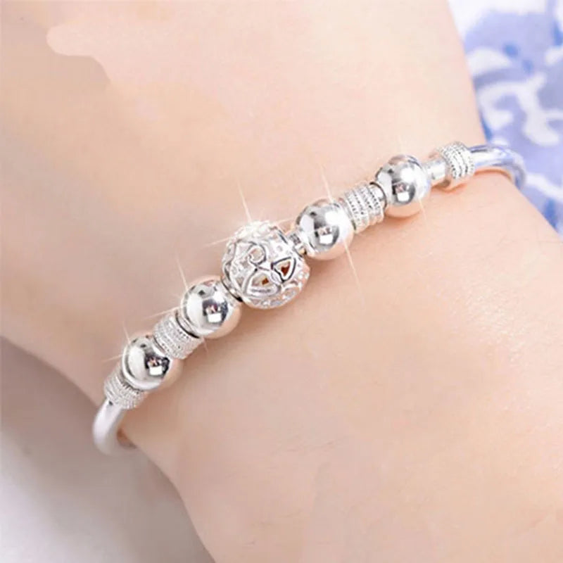 This stunning 925 sterling silver bracelet is a perfect lucky charm piece. It features intricate detailing and a beautiful design that will elevate any outfit. Ideal for Christmas gifting!