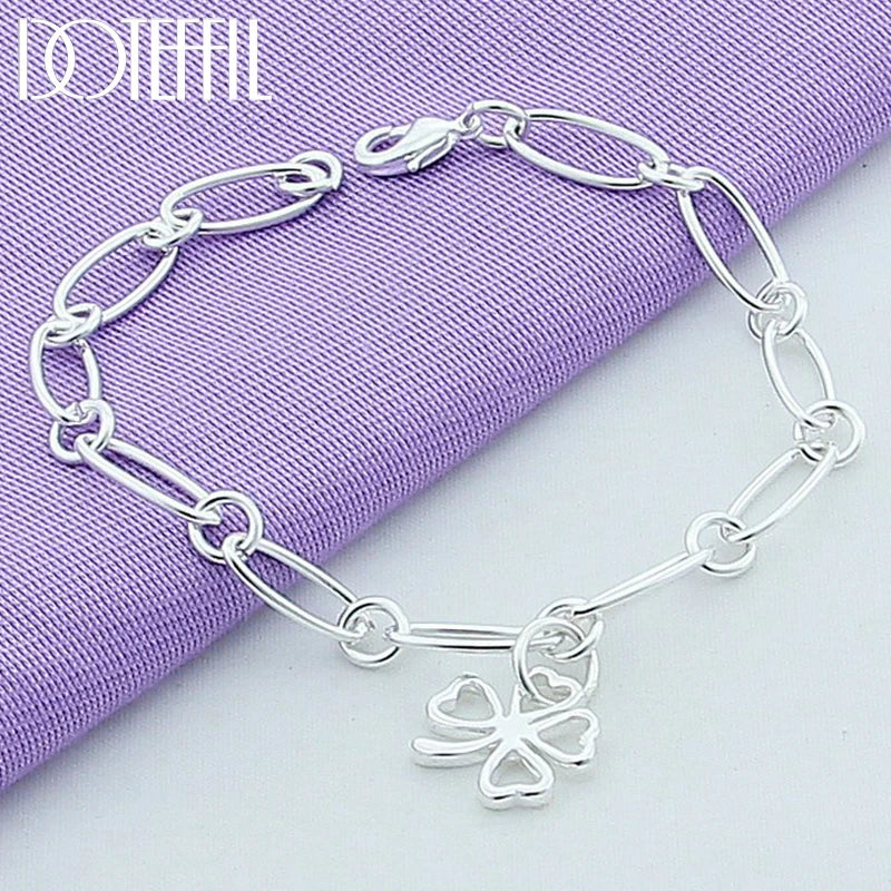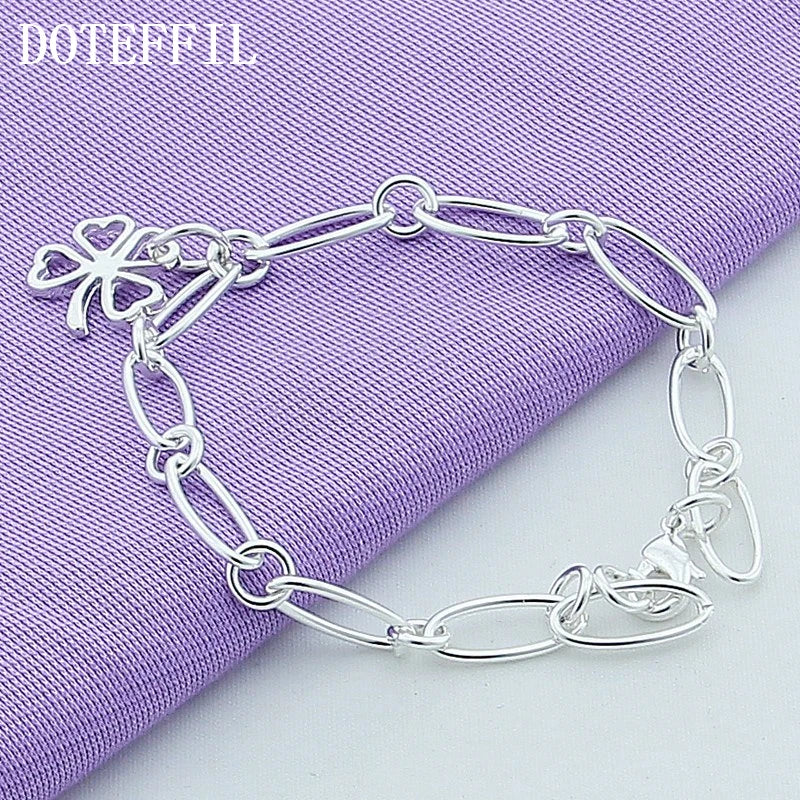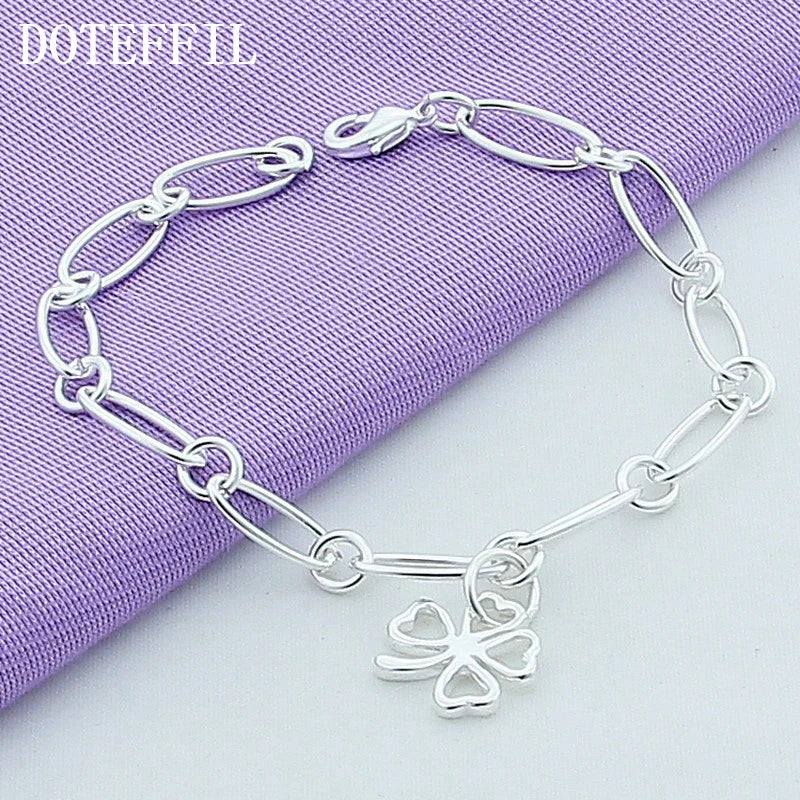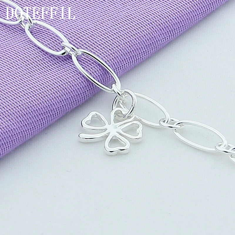 - 925 sterling silver bracelet with lucky clover flowers pendant