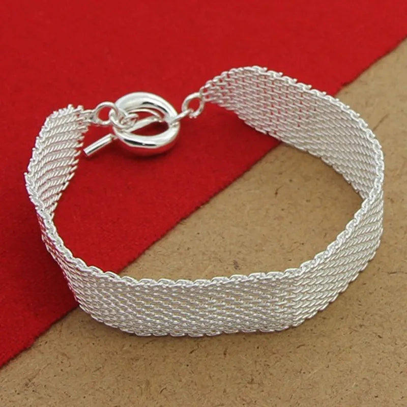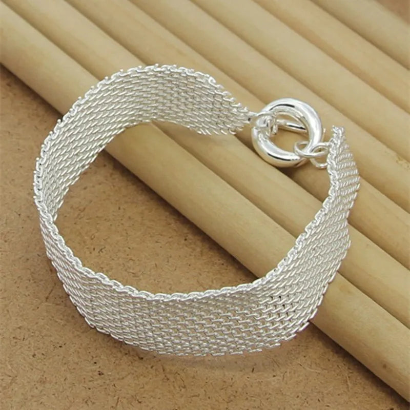Elegant 925 sterling silver mesh bracelet for women. A charming jewelry gift suitable for any occasion.
