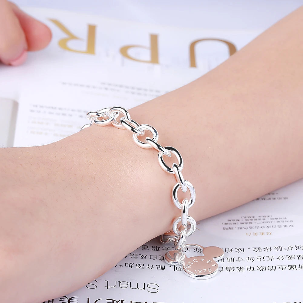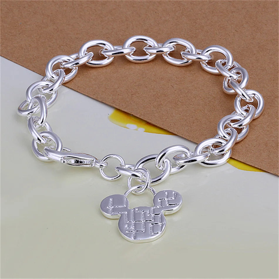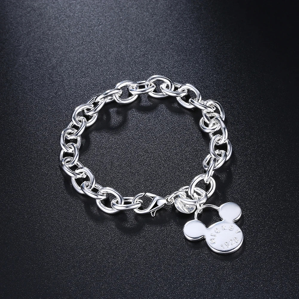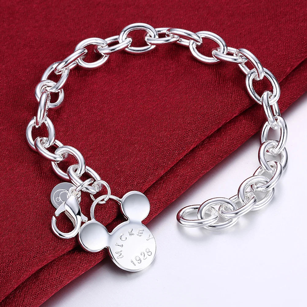 925 Silver Mickey Chain Bracelet Charm Jewelry Gift