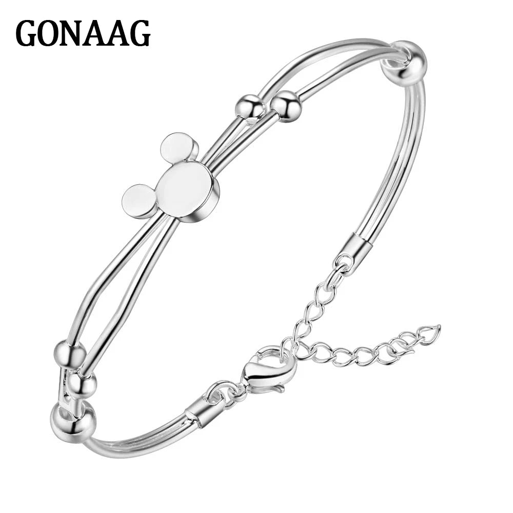 925 Silver Mickey Open Bangle Women Nice Bracelet Charm Wedding Gift