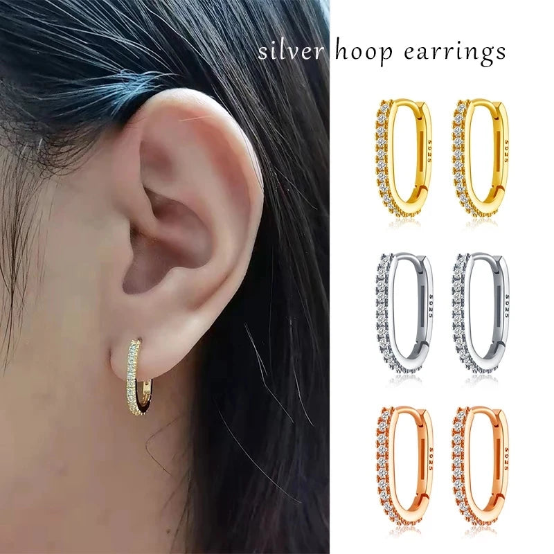 These stunning stud earrings are crafted from 100% real 925 sterling silver and feature a minimalist design with pave zircon stones. Perfect for both women and men, these earrings are ideal for parties or as a special gift.