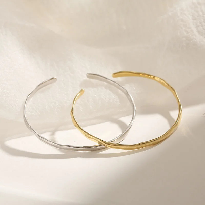 This sterling silver bangle bracelet features an irregular smooth design, perfect for adding a touch of elegance to any outfit. Ideal for women and men with discerning taste.