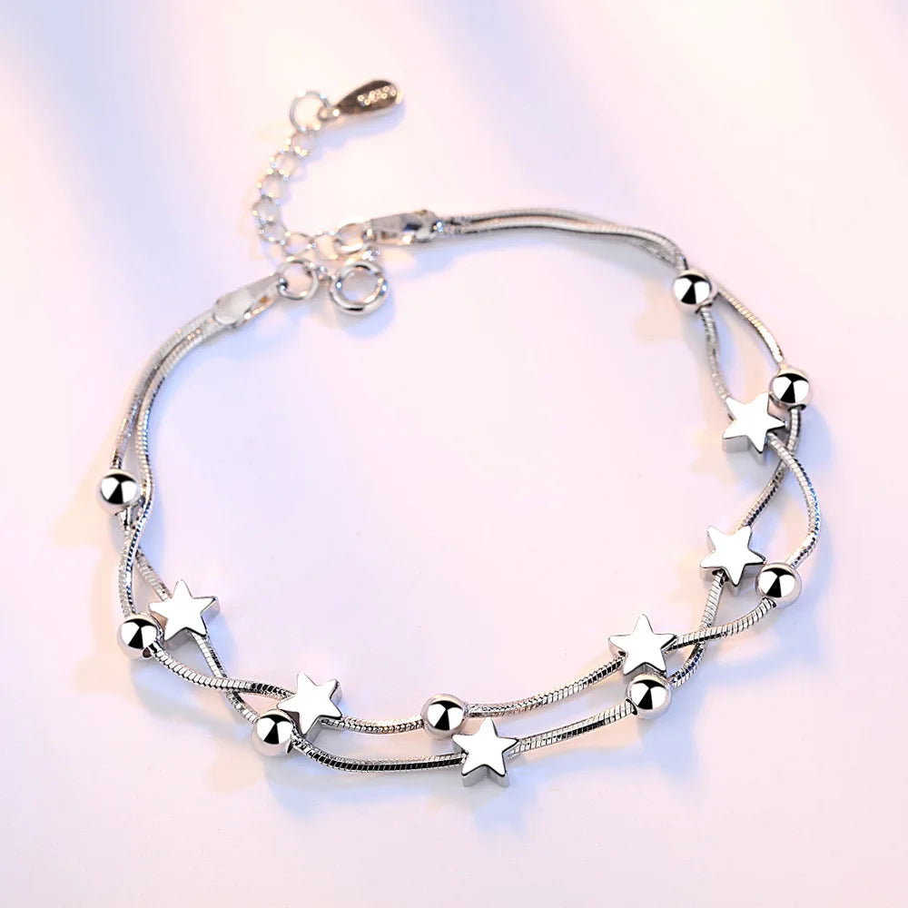 Elegant 925 sterling silver bracelet featuring pentagram square sugar ball beads, perfect for engagements and weddings.