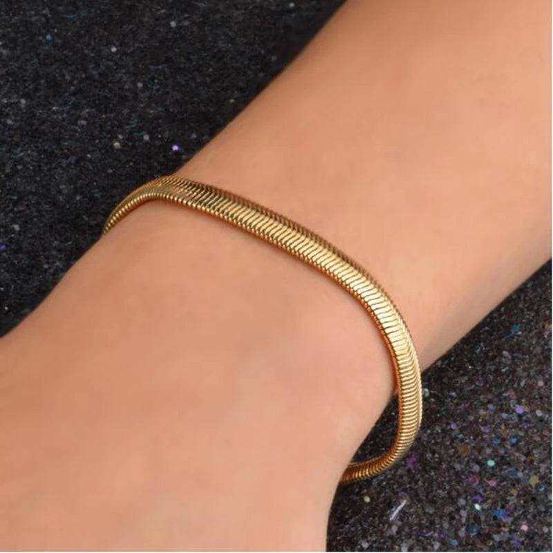 Elegant snake bone chain bracelet made of fine 925 sterling silver plated with 18K gold. Perfect for parties and a classy addition to any outfit.