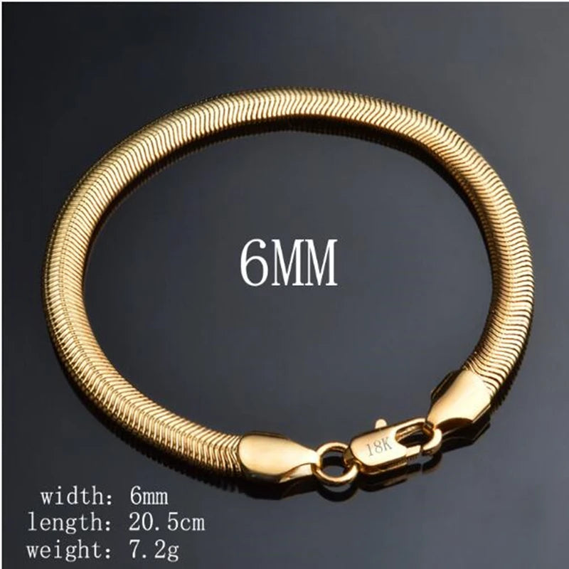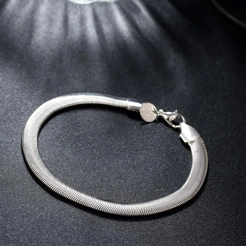 925 Silver Plated 18K 6MM Snake Bone Chain Bracelets for Women Men