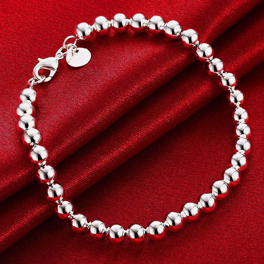 This 925 silver bracelet features smooth round ball beads in 4/6/8/10mm sizes. A perfect gift for women and girls.