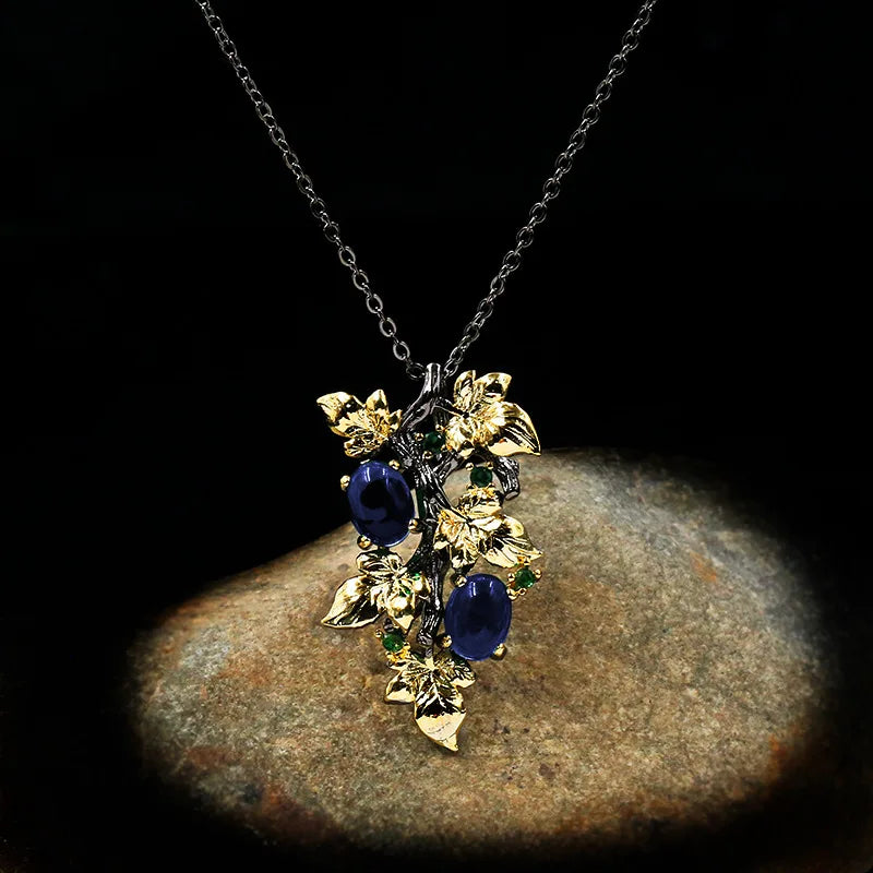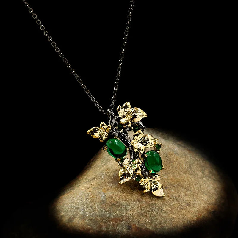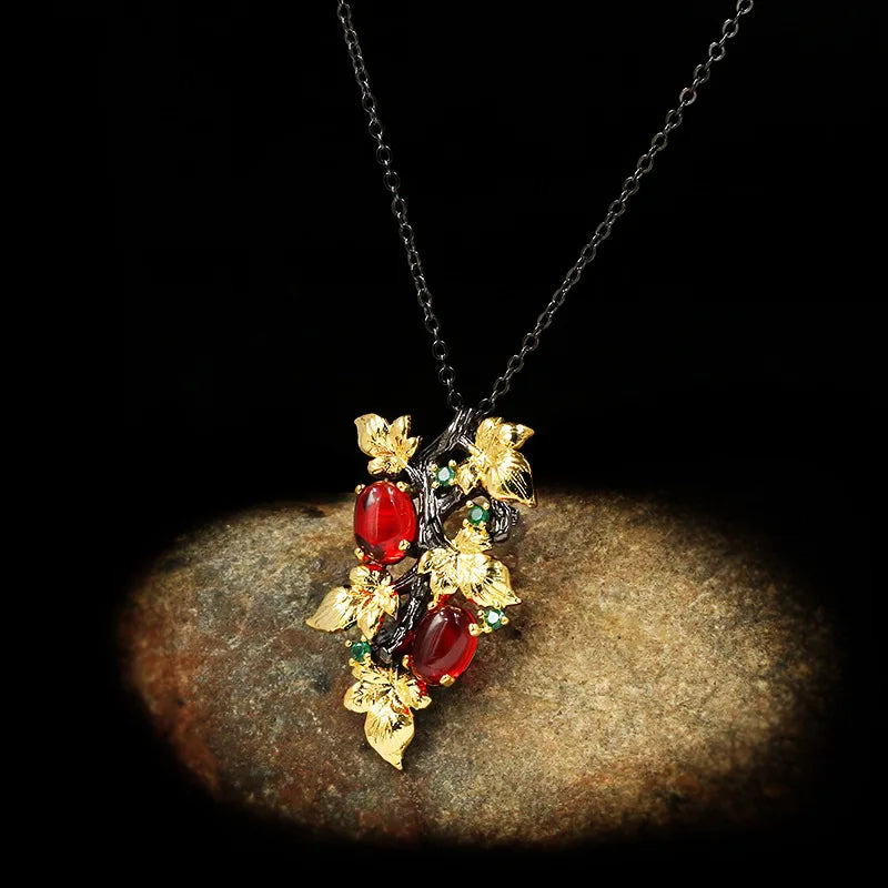 This elegant necklace features winding branches and a ruby flower design, perfect for parties, engagements, and weddings.