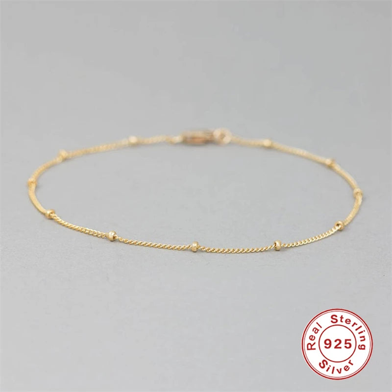 Add a pop of color to your outfit with this dainty rose red bracelet. Made of 925 sterling silver, this minimalist chain bracelet with small beads is a perfect accessory for any party or event.