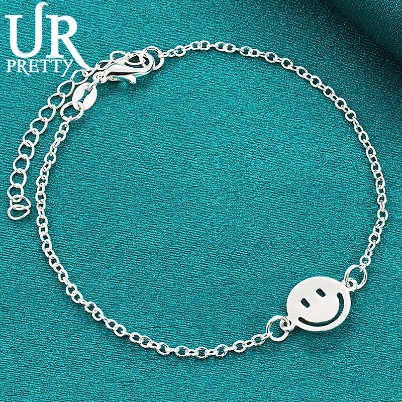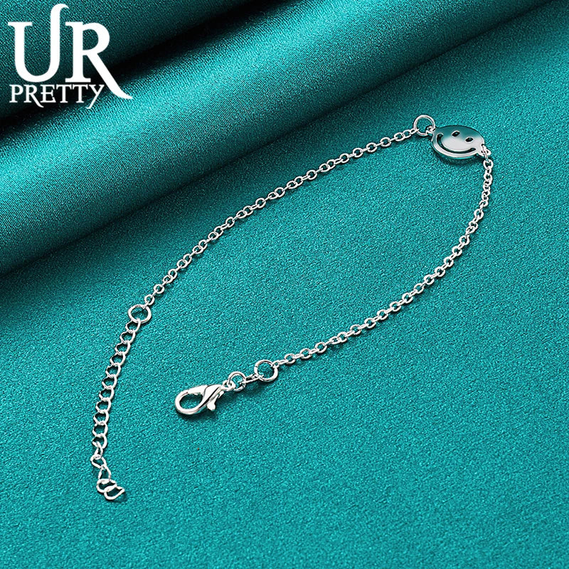 925 Silver Smiling Face Pendant Chain Bracelet Women Wedding Charm Jewelry