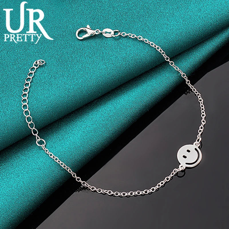This adorable 925 sterling silver bracelet features a smiling face pendant, perfect for weddings, engagements, or as a charming gift. The chain bracelet is elegant and stylish, adding a touch of joy to any outfit.