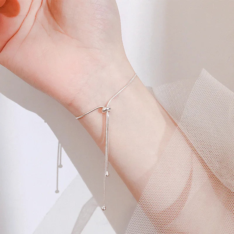 Elegant 925 sterling silver charm bracelet with a beautiful bow knot design. Adjustable for a perfect fit, this bracelet is a perfect accessory for women.