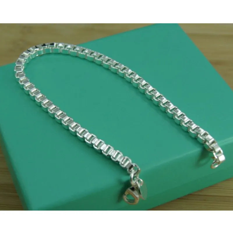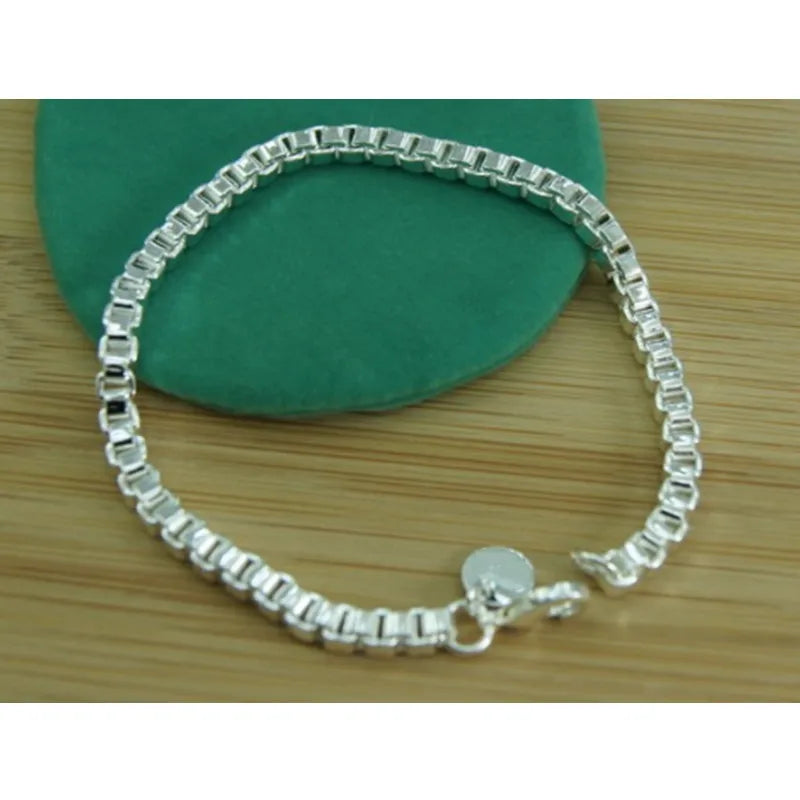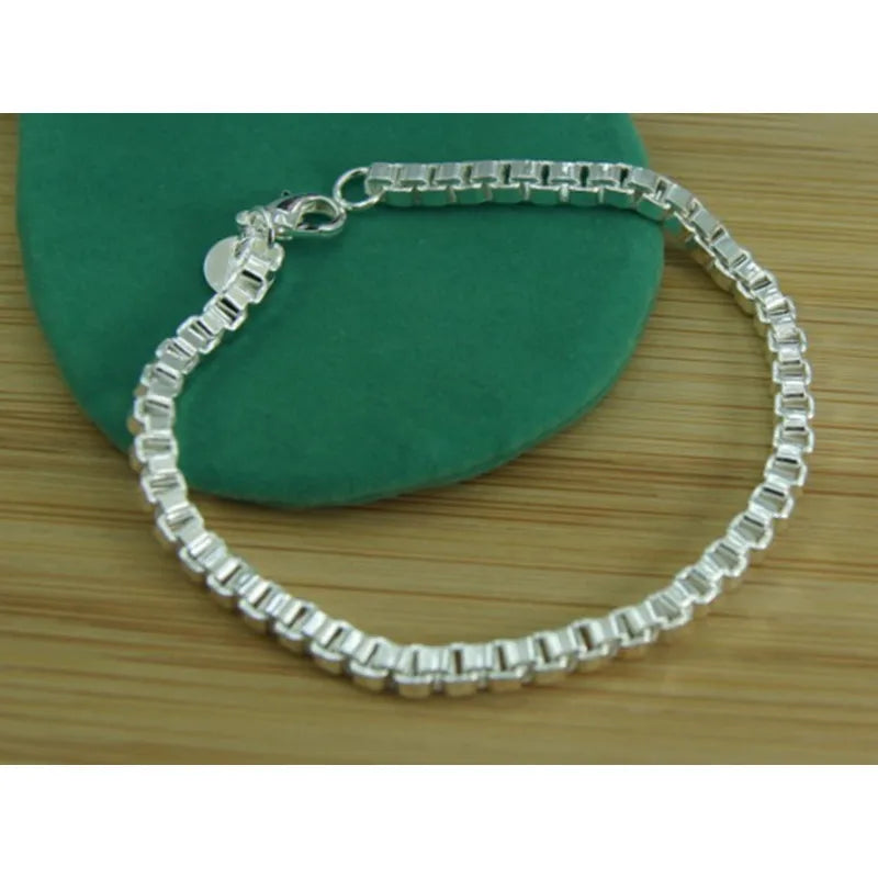 This stylish 925 sterling silver bracelet features a 4mm square box design. Perfect for women and men, it makes a great jewelry gift.