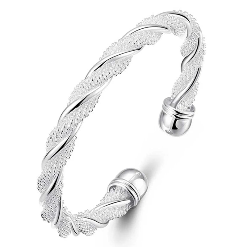 Add a touch of punk style to your look with this 925 silver sterling mesh wide braided bangle bracelet. Perfect for both women and men, this unique piece of jewelry will make a statement wherever you go.
