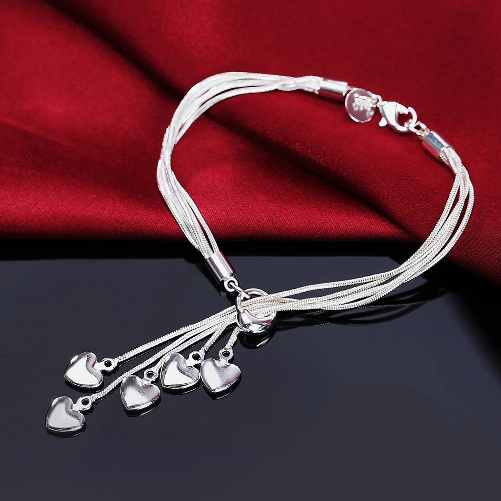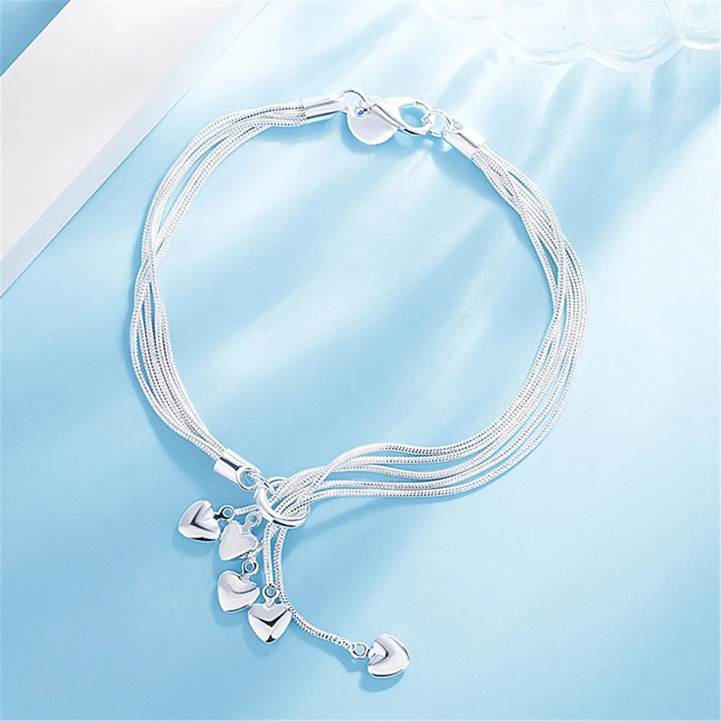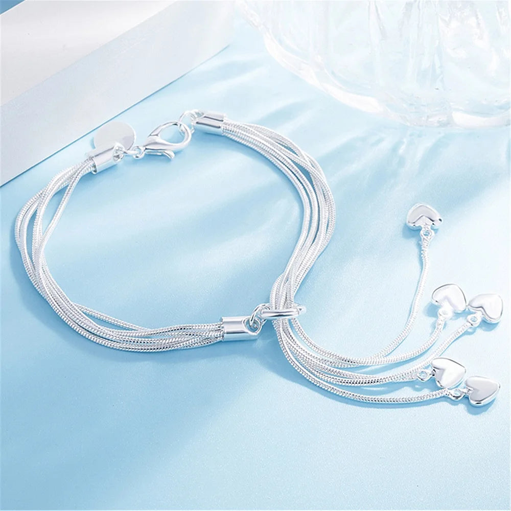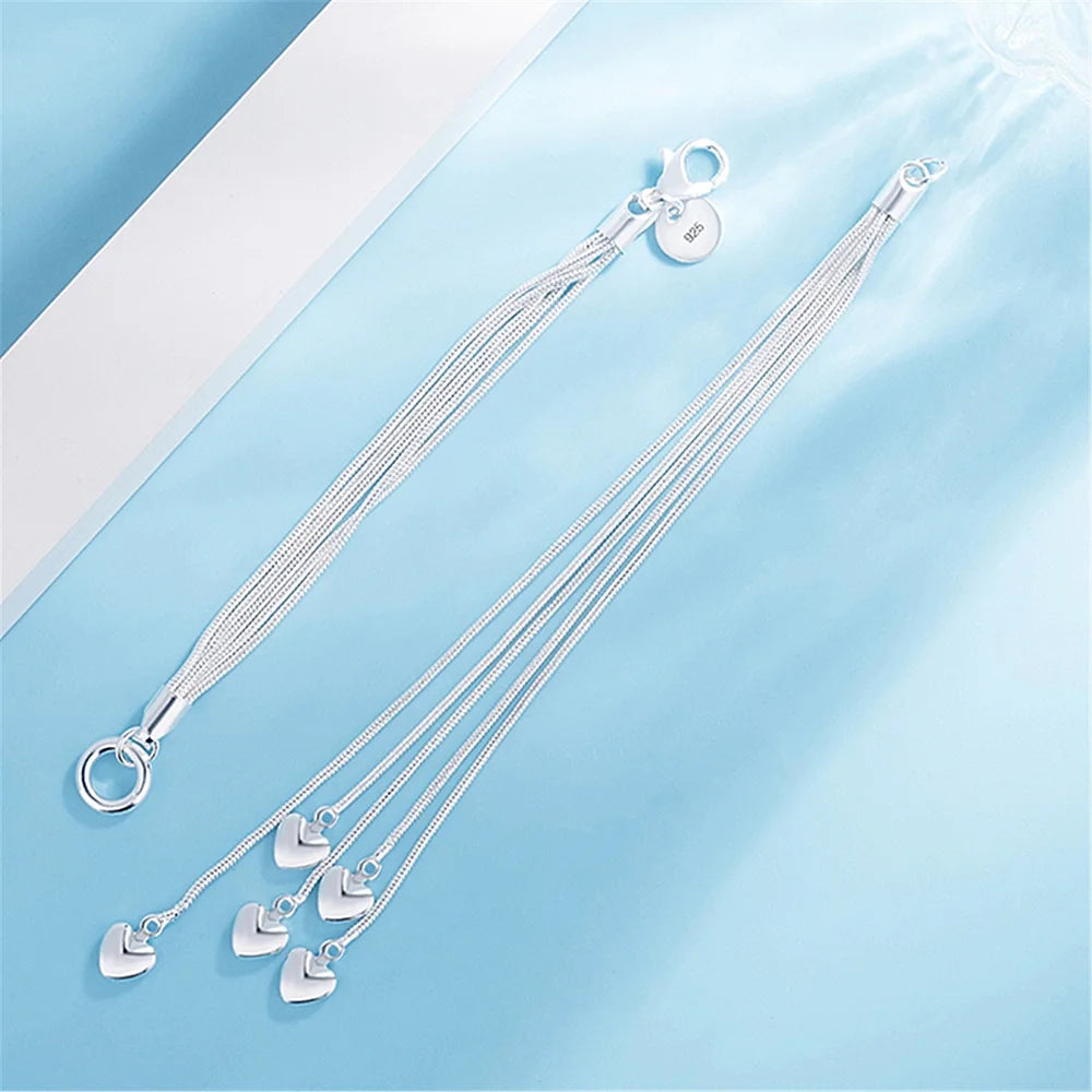 925 Silver Tassel Heart Snake Chain Bracelet Wedding Fine Jewelry