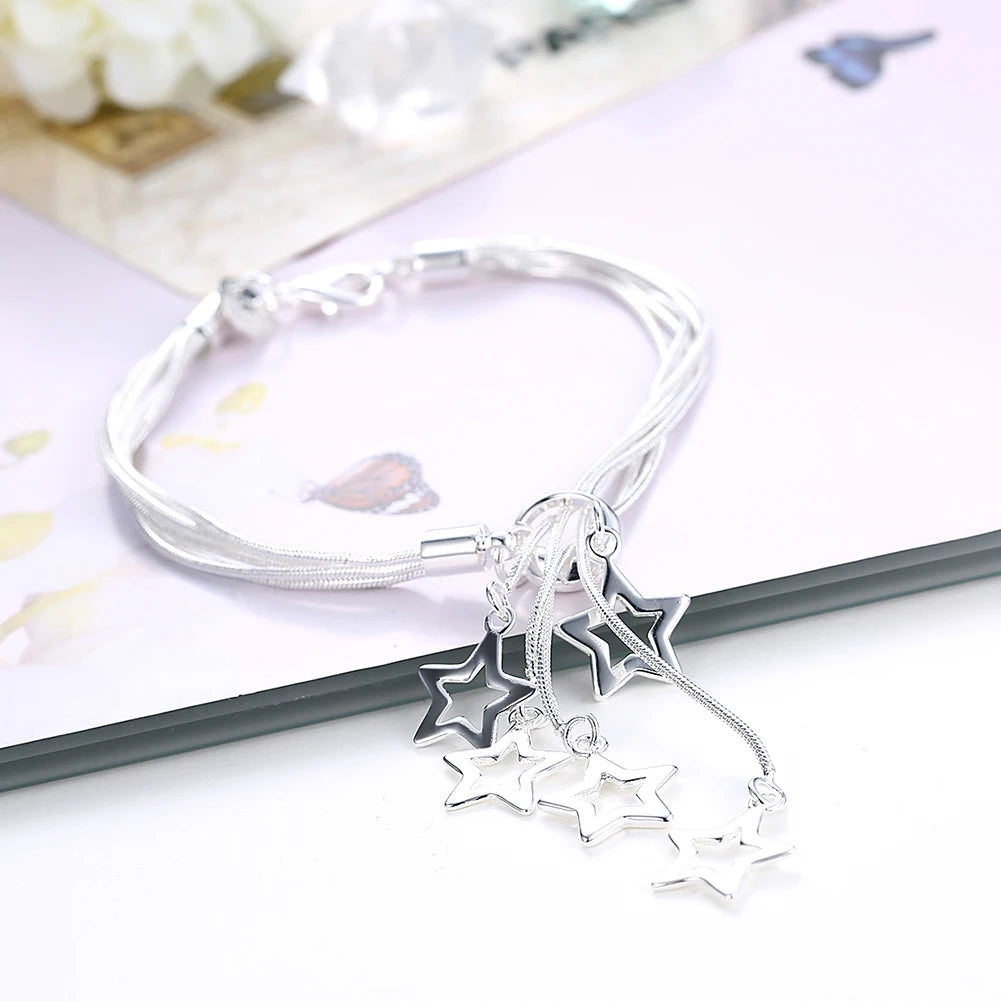 925 Silver Tassel Star Pendant Bracelet for Woman
