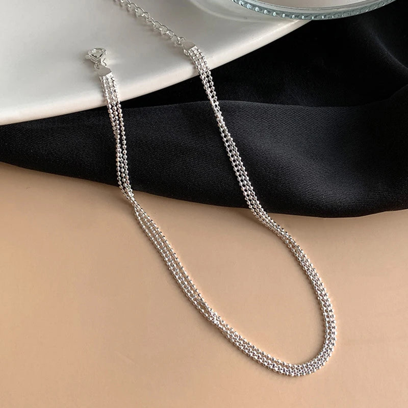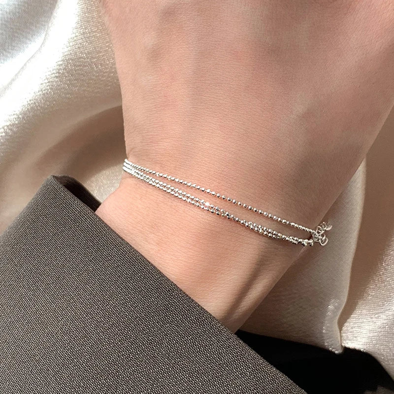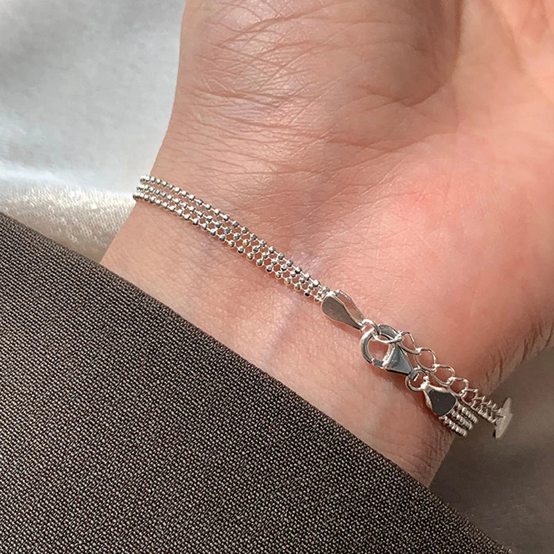 925 Silver Three-layer Beaded Bracelet Women Gift Jewelry