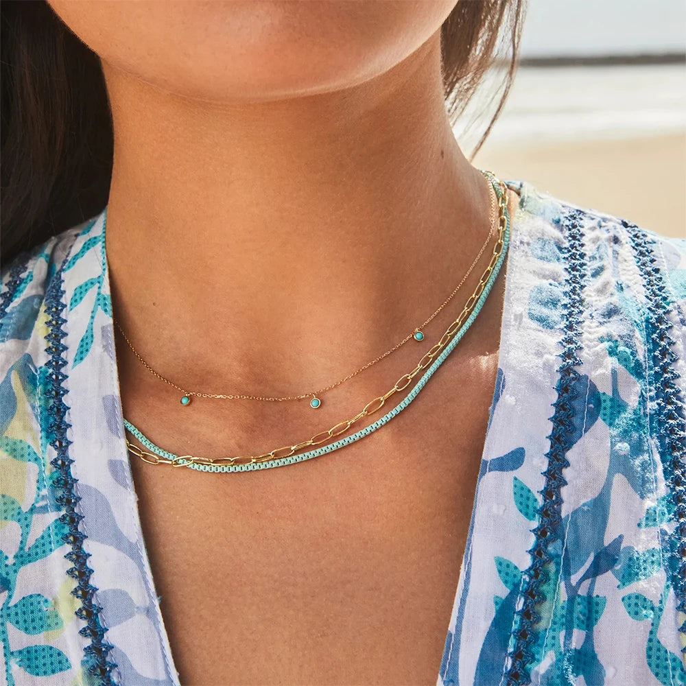 Add a touch of elegance with this mini turquoise pendant clavicle necklace. Perfect for weddings or daily wear, this 925 sterling silver chain is a great gift for any occasion.