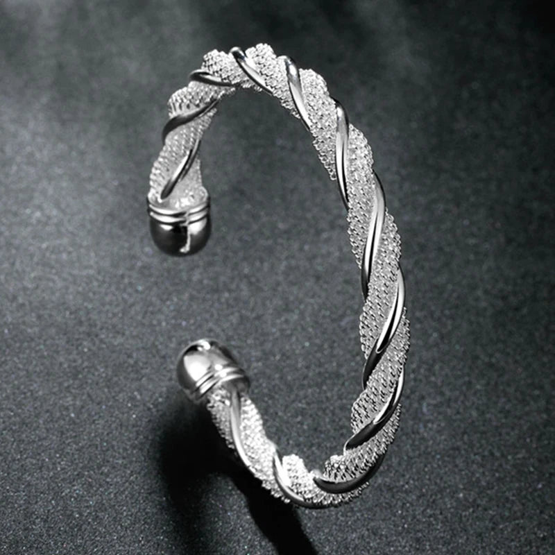 Add a touch of charm and elegance with these 925 silver twist bangles. Perfect for engagement or everyday wear.