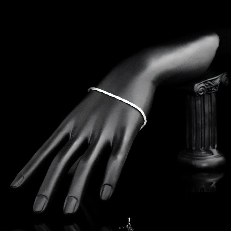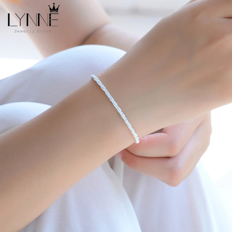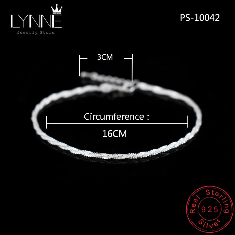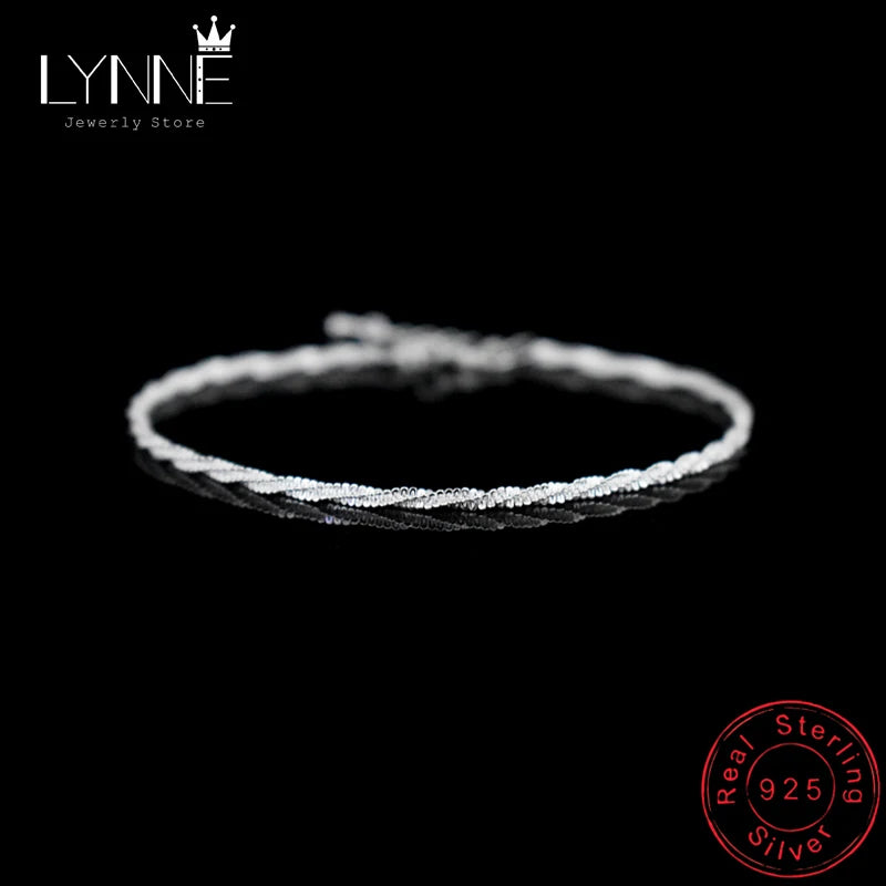 Elegant 925 sterling silver bracelet featuring a delicate twisted chain with a wave pattern. Perfect for women and girls, this bracelet makes a stylish accessory or a thoughtful gift.
