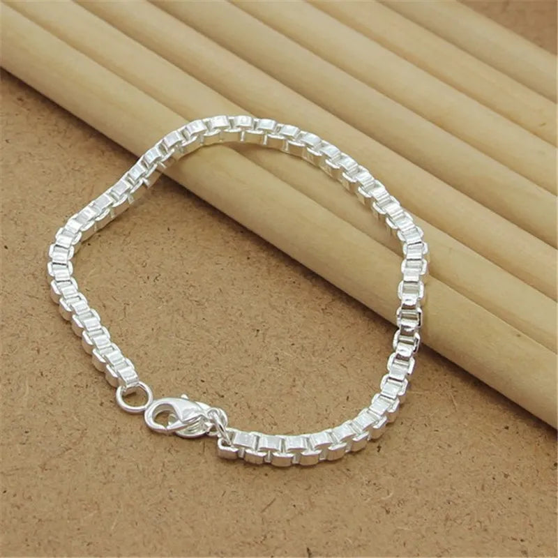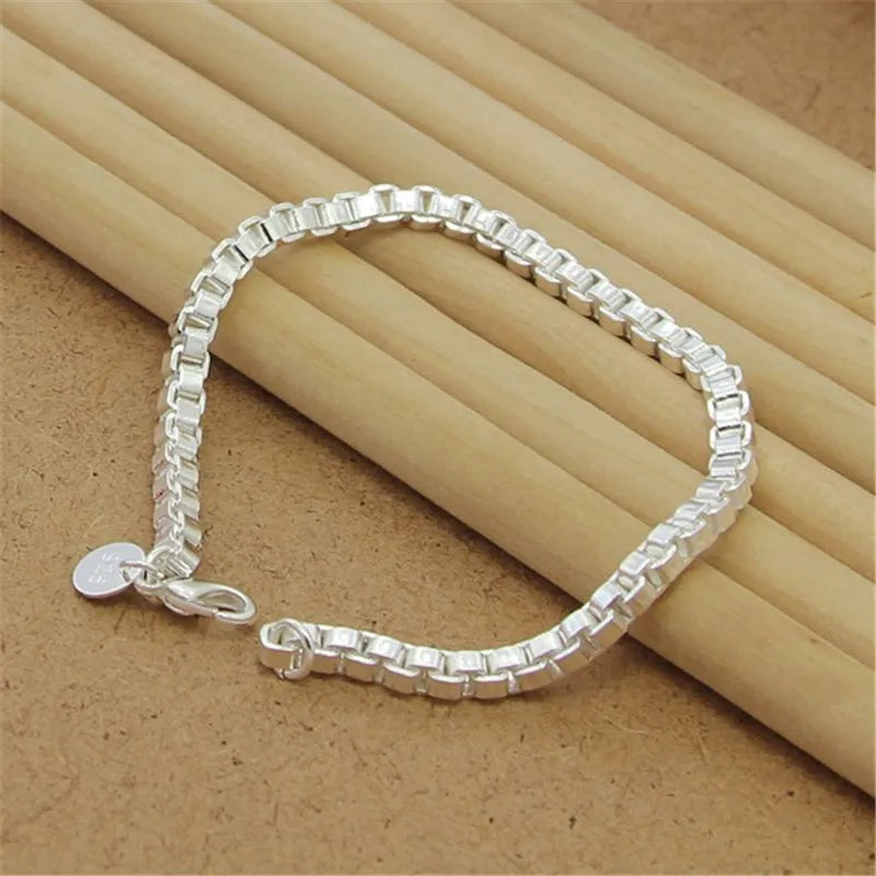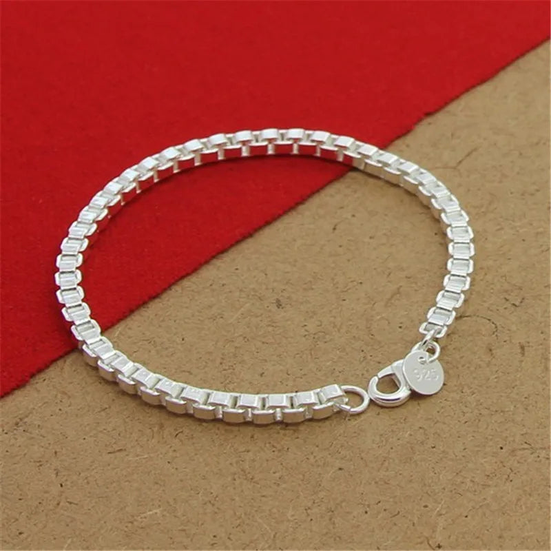 This 925 silver bracelet features a classic Venetian square design, suitable for both women and men. A timeless piece of jewelry that adds elegance to any outfit.