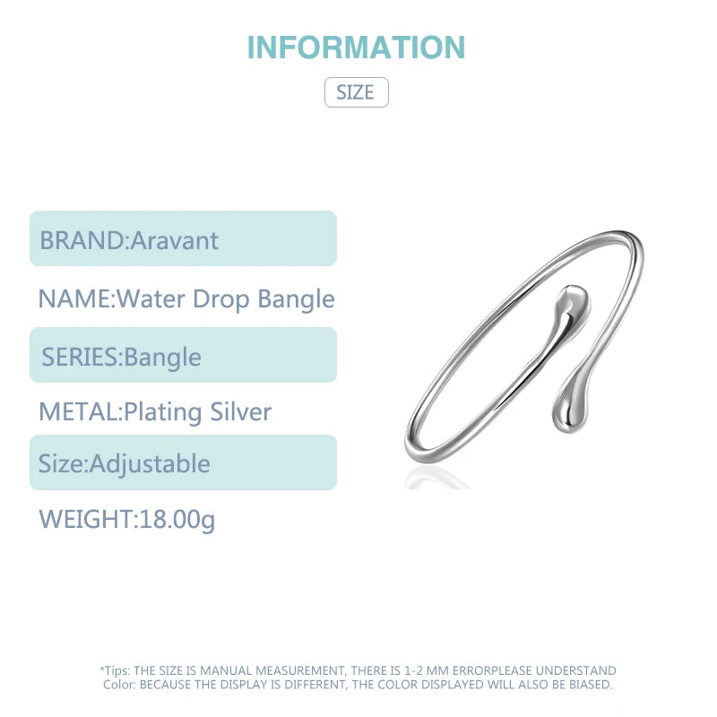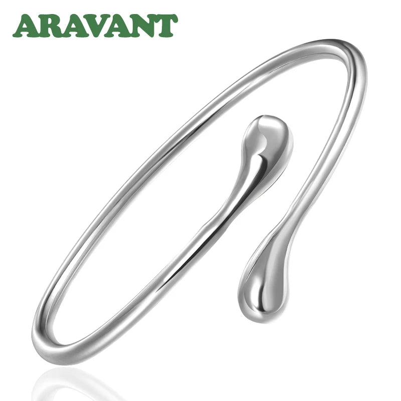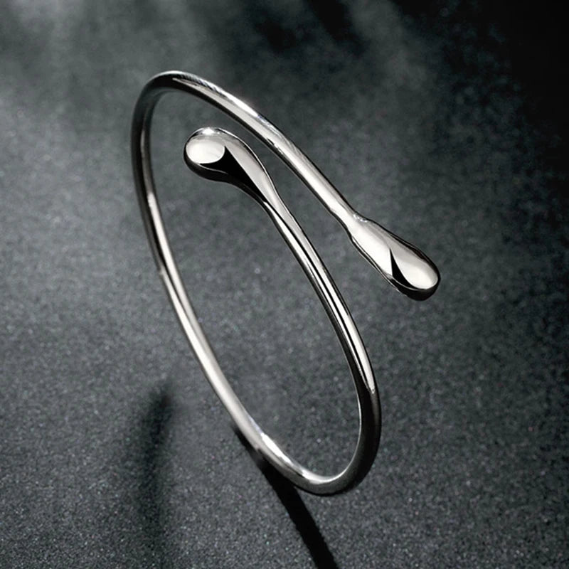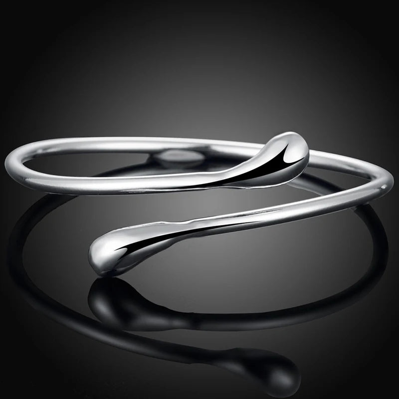 Elegant 925 silver bangle with smooth water drop design, perfect for weddings and parties