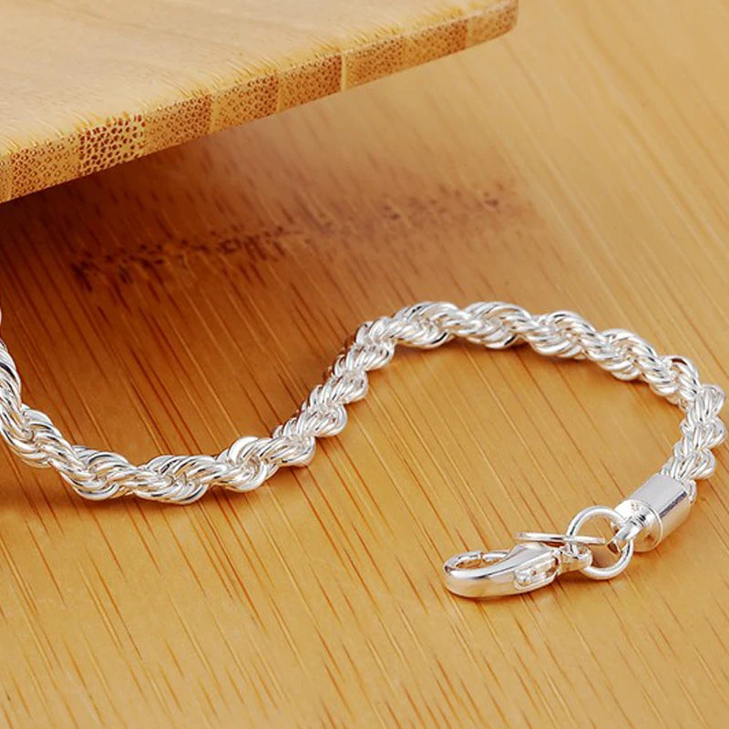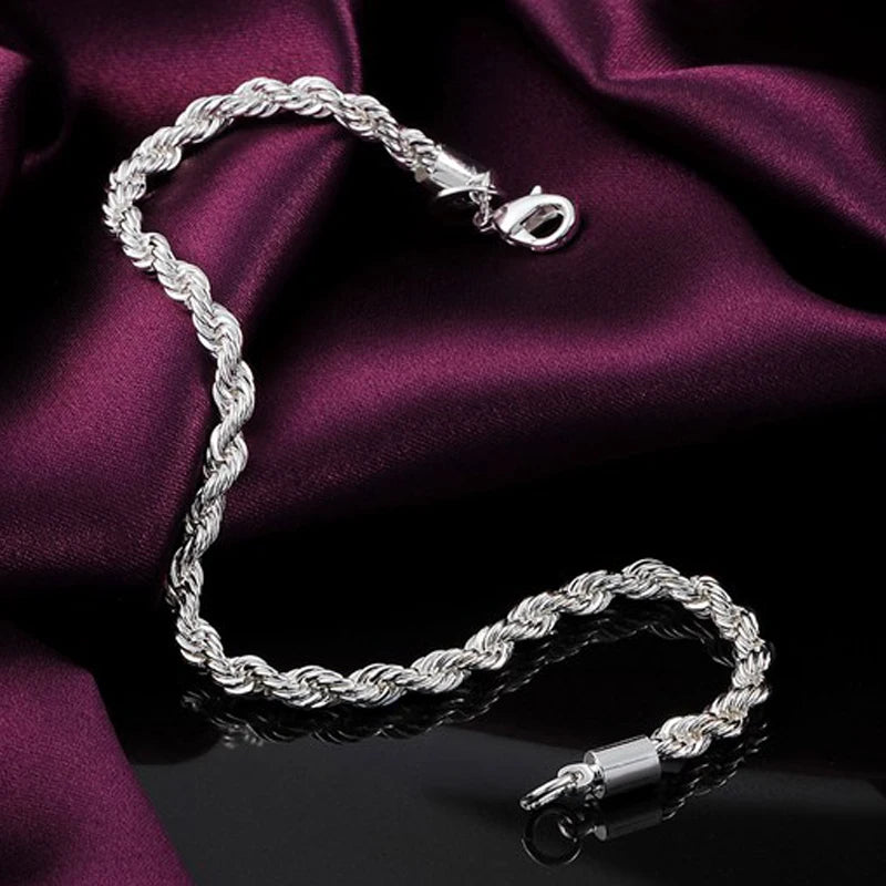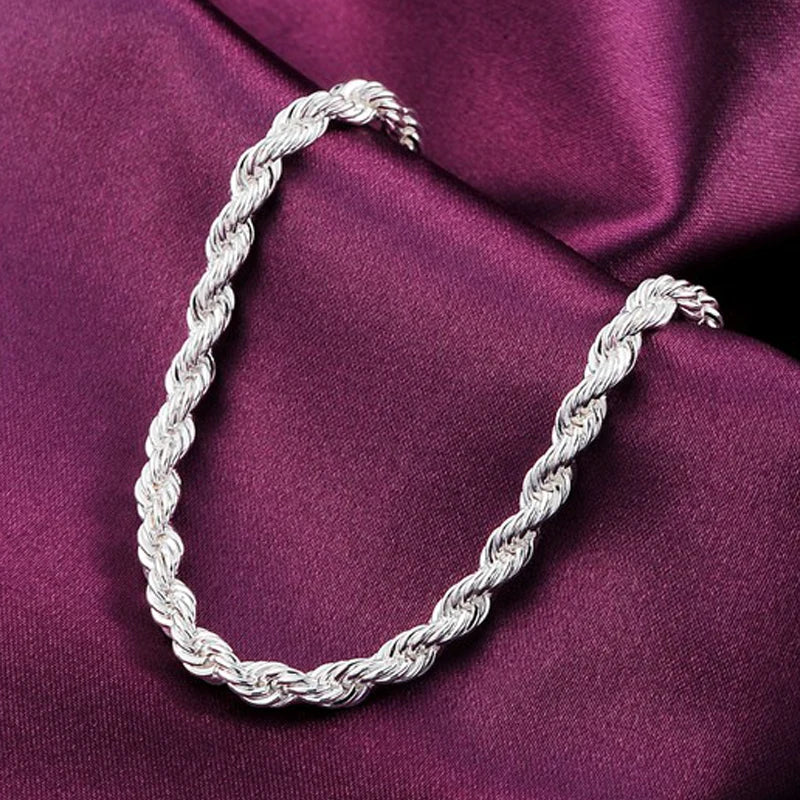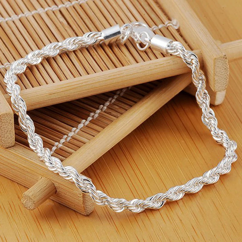 Make a stylish statement with this 925 sterling silver 4mm water wave chain bracelet suitable for women and men at weddings, engagements, and parties.