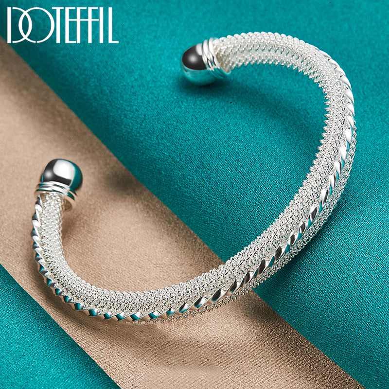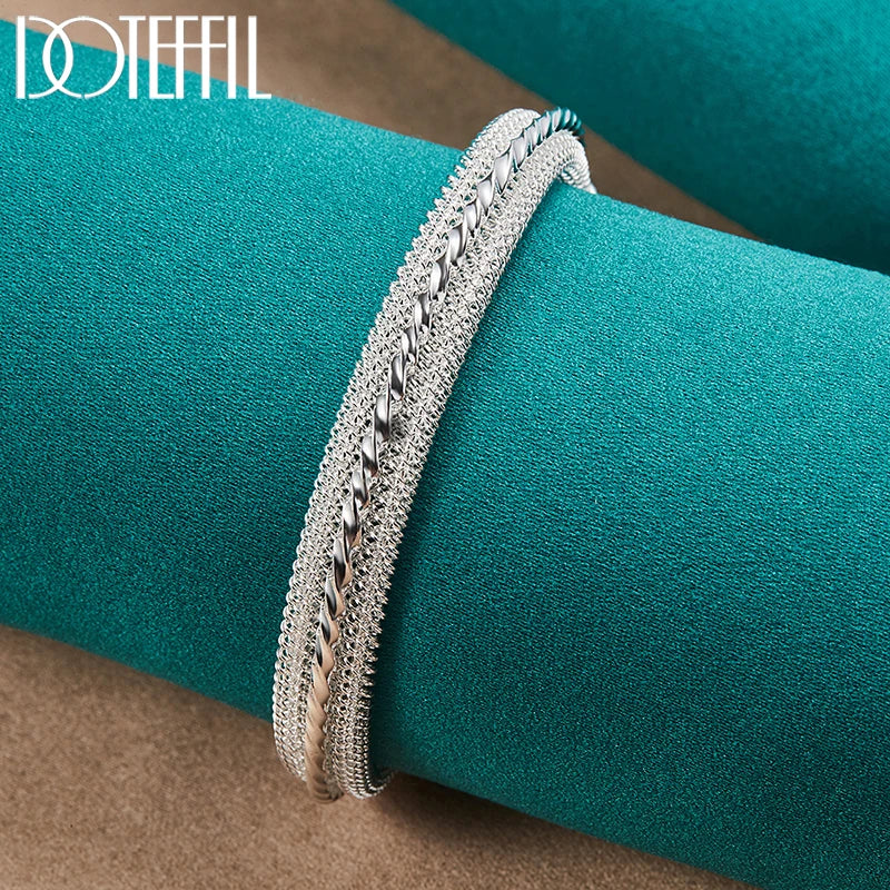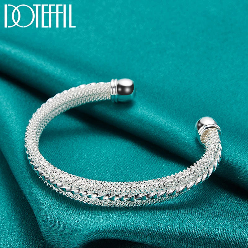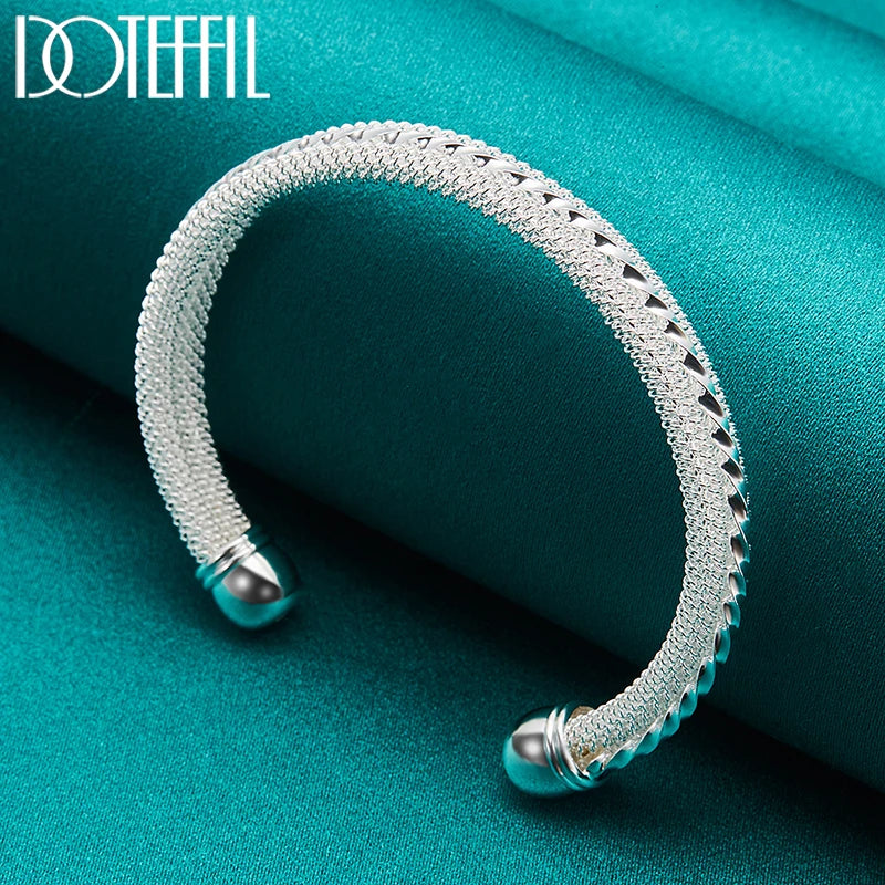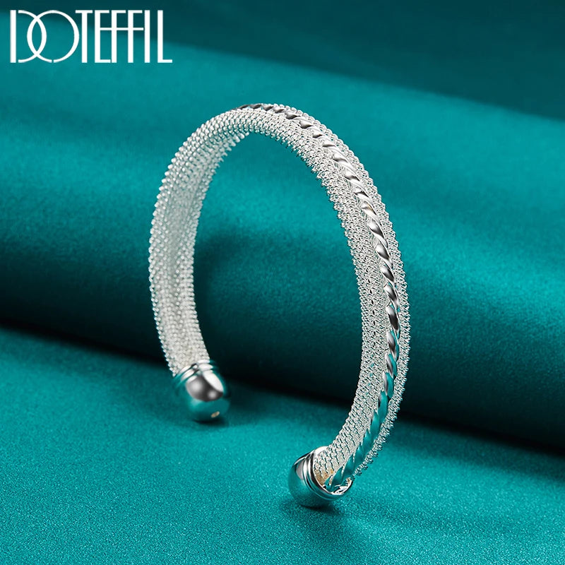 This elegant woven mesh bangle bracelet is made of 925 sterling silver, perfect for weddings, engagements, parties, and everyday wear.
