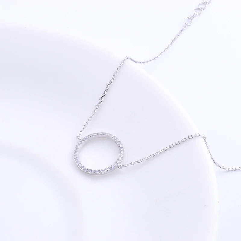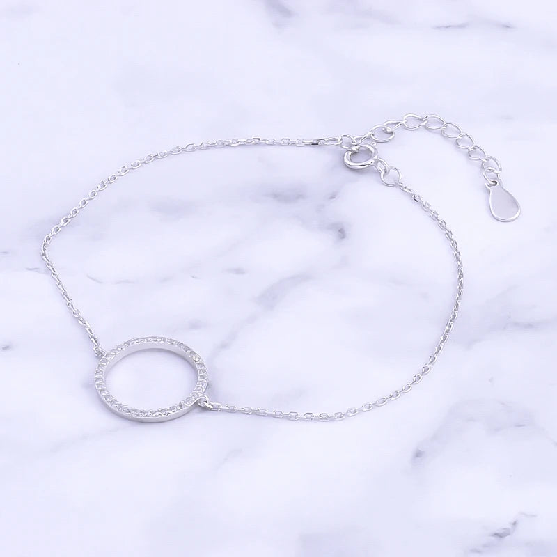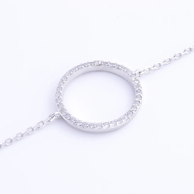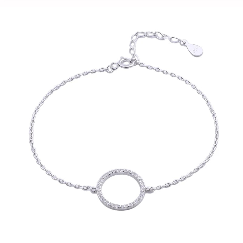 A stunning 925 sterling silver zircon big circle round wrist bracelet perfect for women. This geometric chains bracelet features girl charms and is a fine jewelry gift for any occasion.