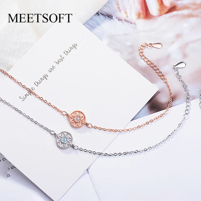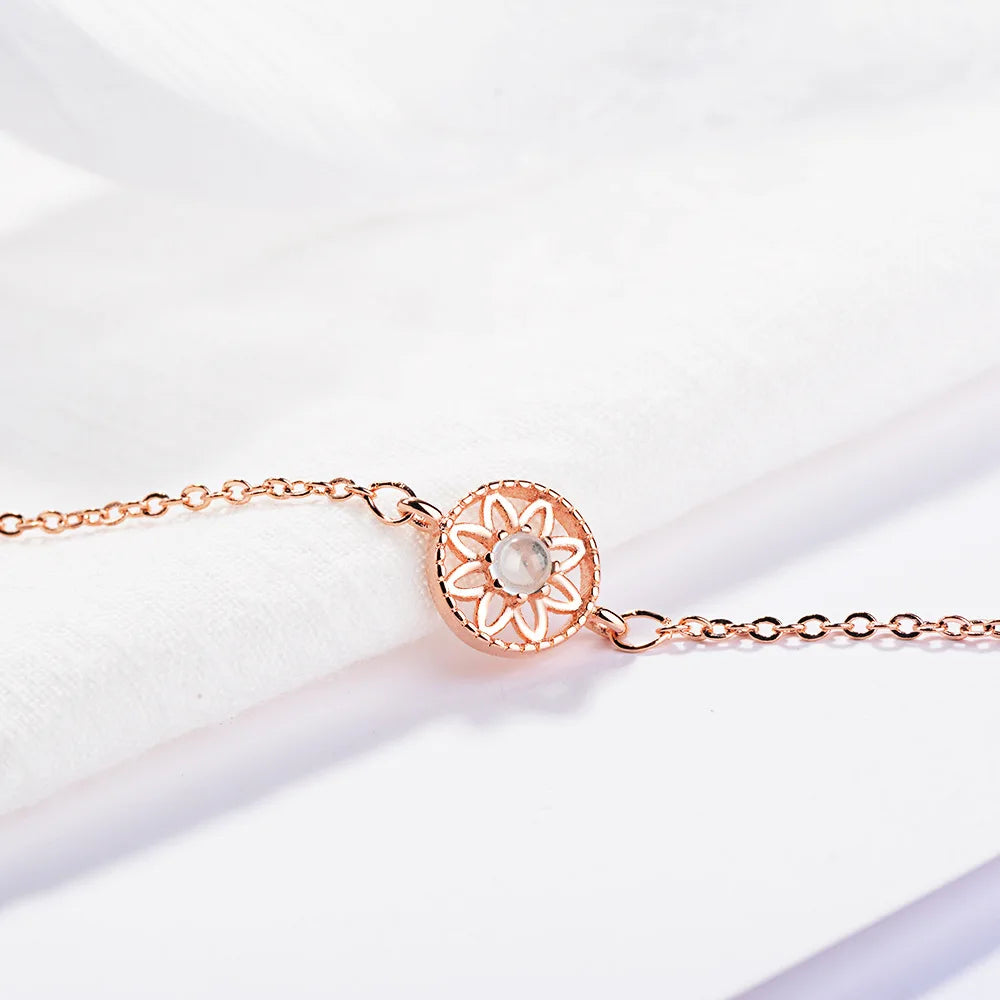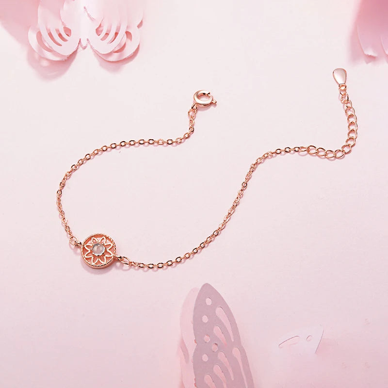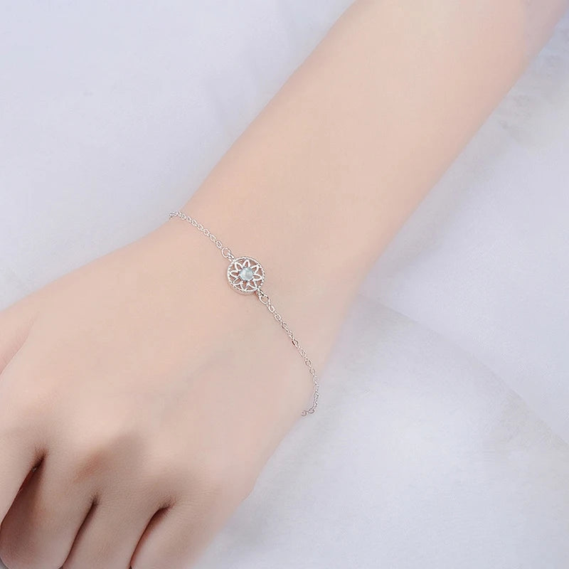 925 Silver Zircon Flower Bracelet Romantic Charm Jewelry