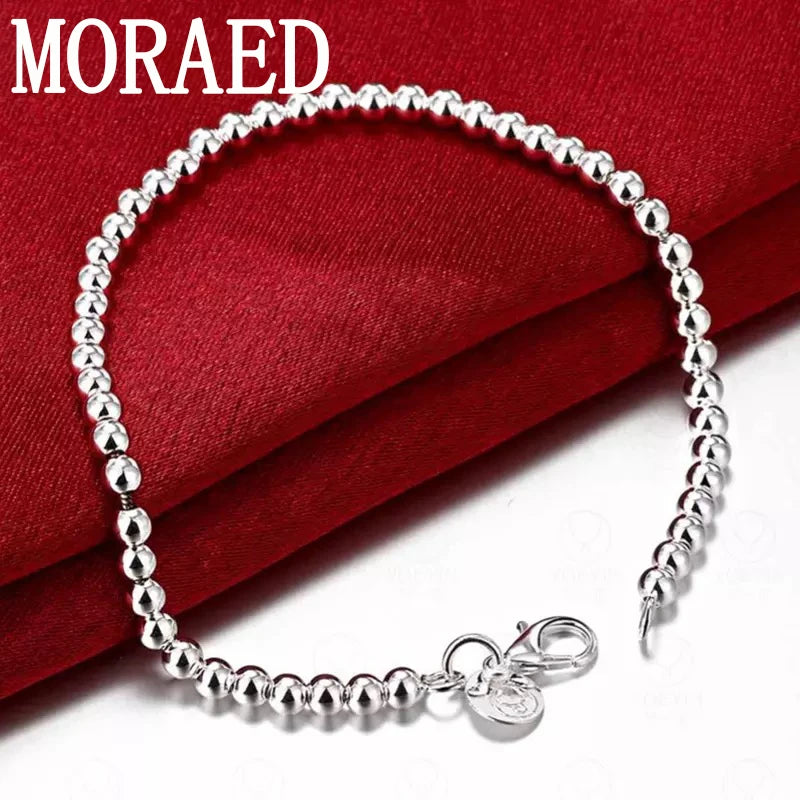 Elegant 925 sterling silver or gold bracelet with 4mm smooth beads, perfect for weddings, engagements, parties or casual wear.