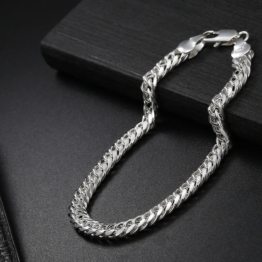 This stunning 925 solid sterling silver bracelet is a perfect accessory for women on various occasions. It features a 6MM sideway chain design that adds elegance to any outfit.