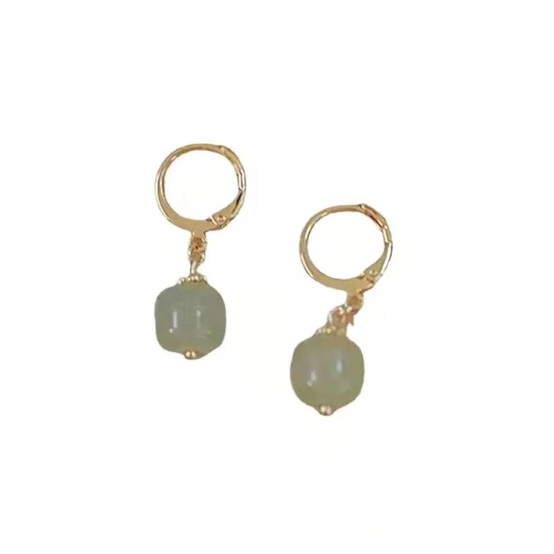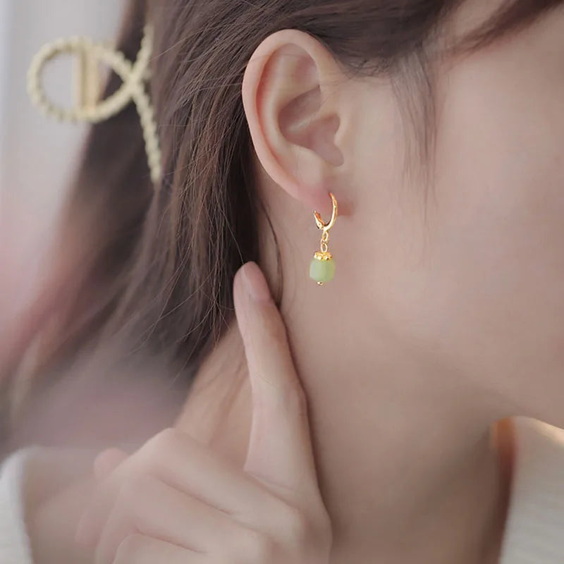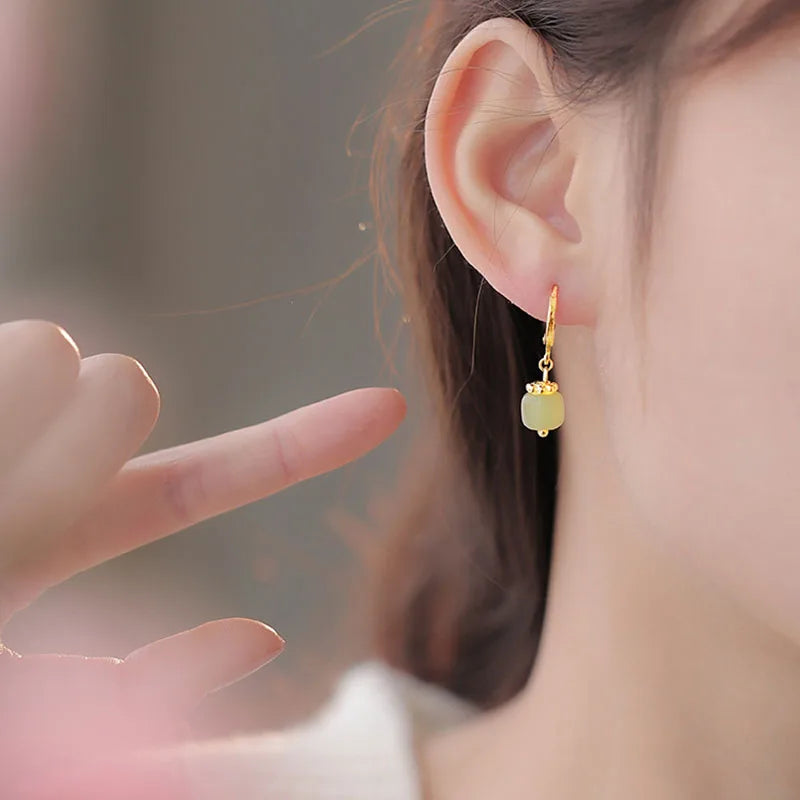 Vintage style earrings crafted with Hetian jade, perfect as a gift for women and girls who appreciate retro literature and art jewelry.