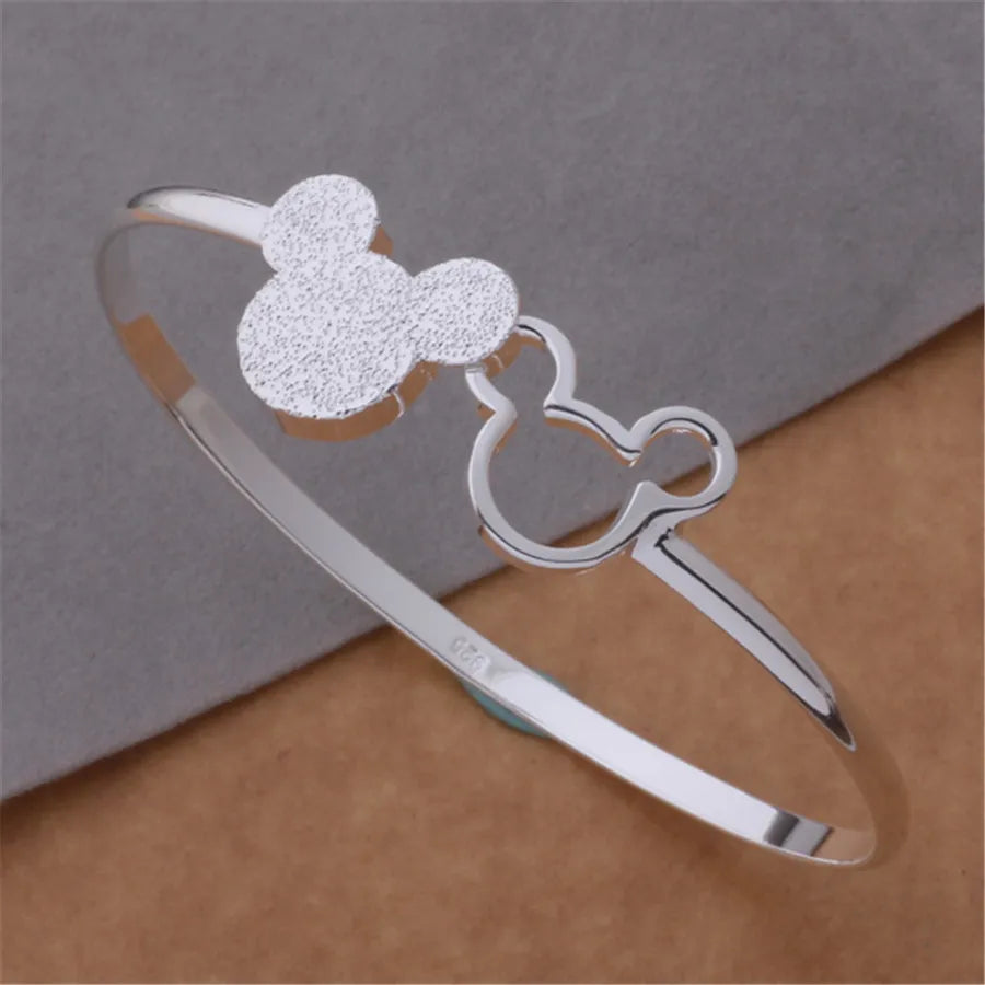 925 Stamped Silver Frosted Mickey Bangle Bracelet for Women