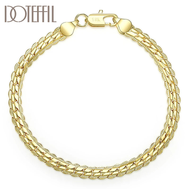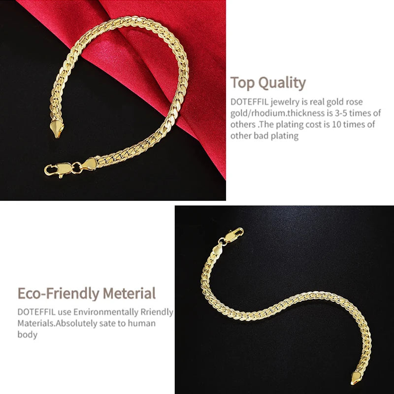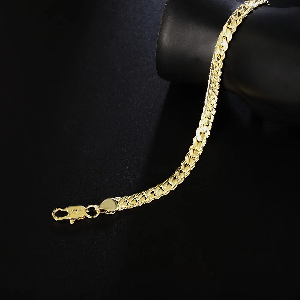 Elegant and timeless 925 sterling silver and 18K gold plated sideways chain bracelet suitable for both women and men. Perfect for wedding, engagement, or everyday wear.