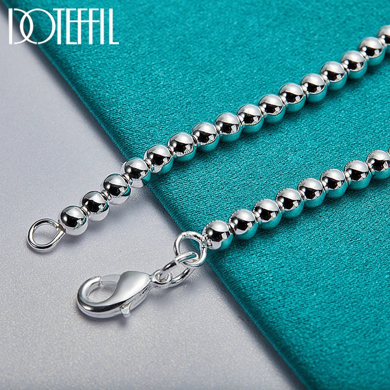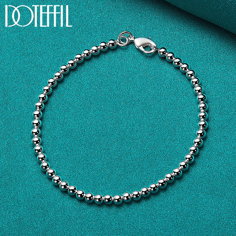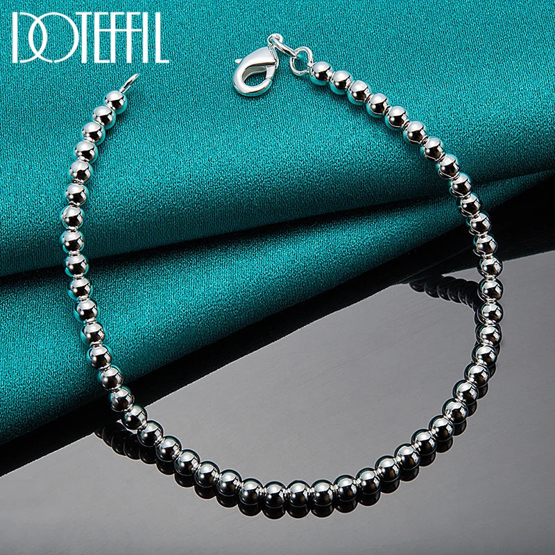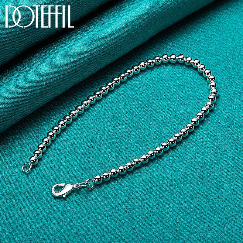 925 Sterling Silver 4mm Bead Ball Chain Bracelet Wedding Engagement Charm Jewelr