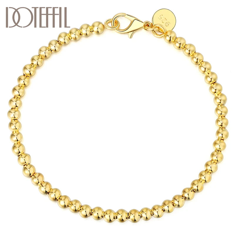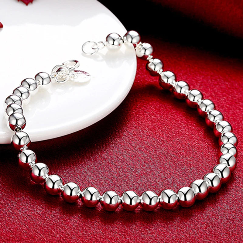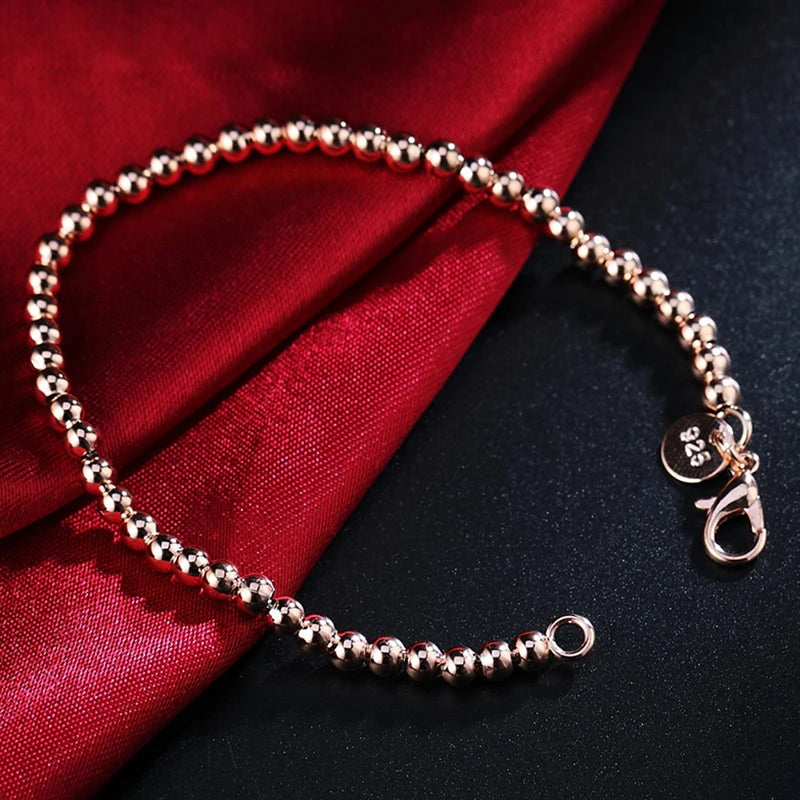 925 Sterling Silver 4mm Rose Bead Chain Bracelet