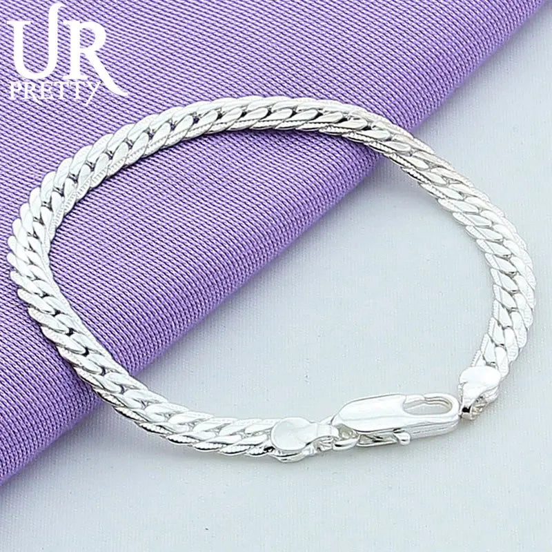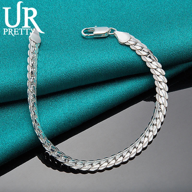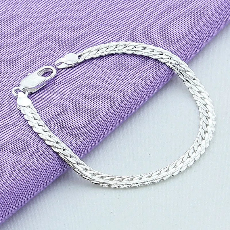 925 Sterling Silver 6mm Lace Chain Bracelet Wedding Engagement Jewelry