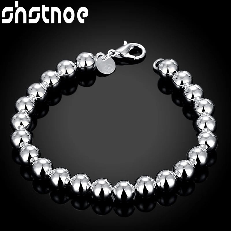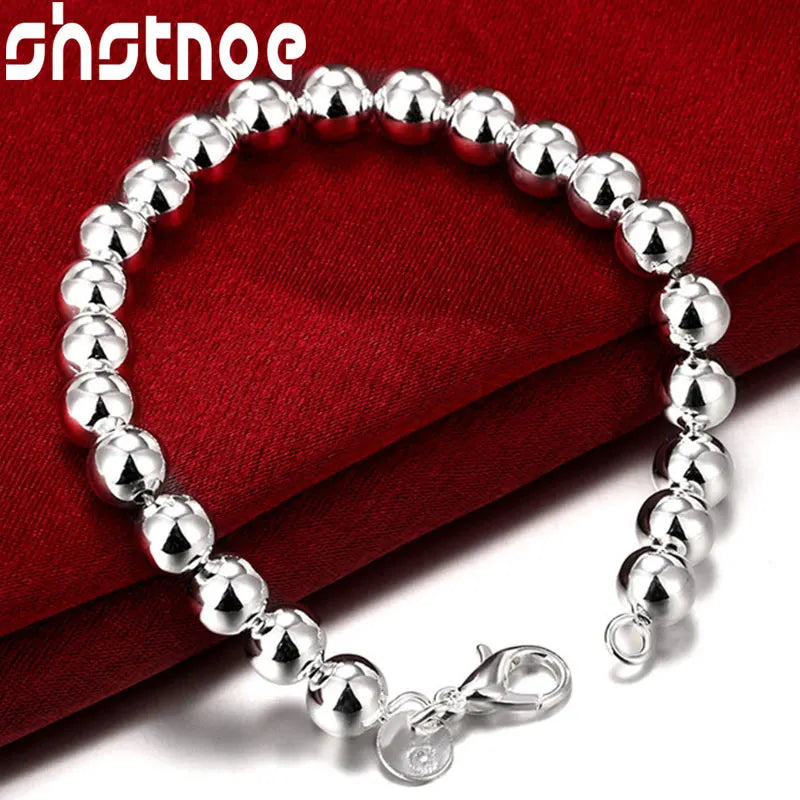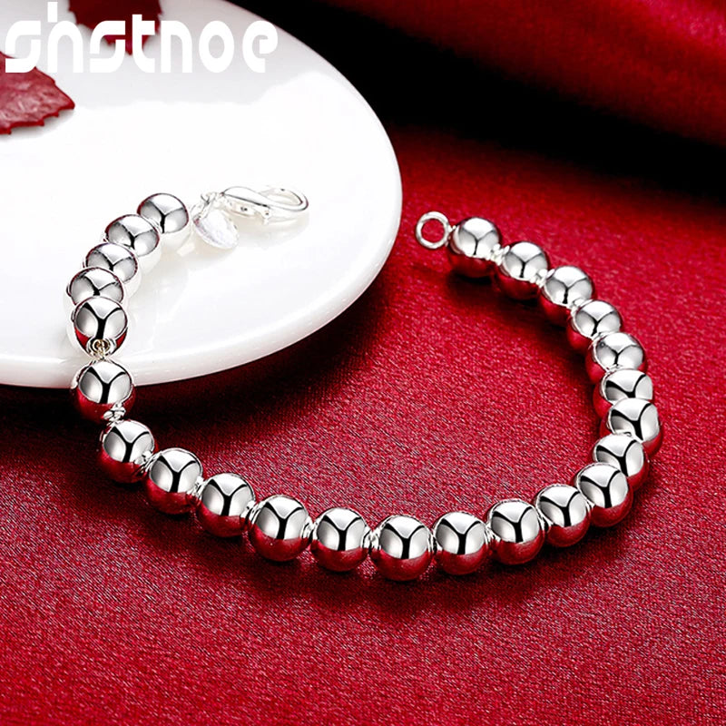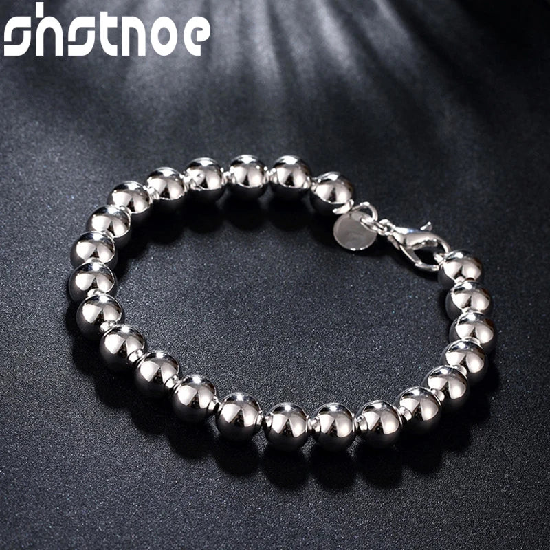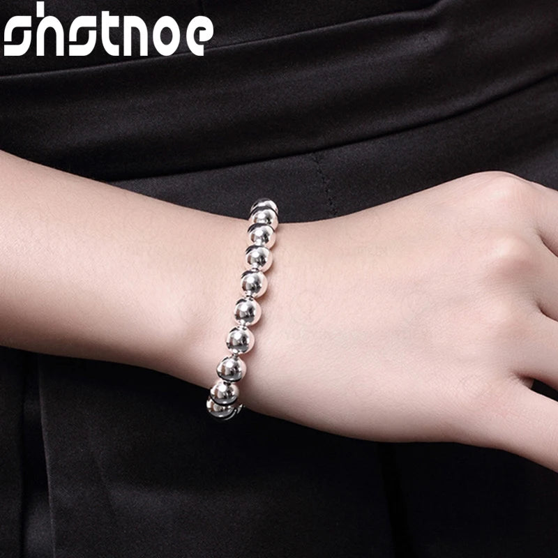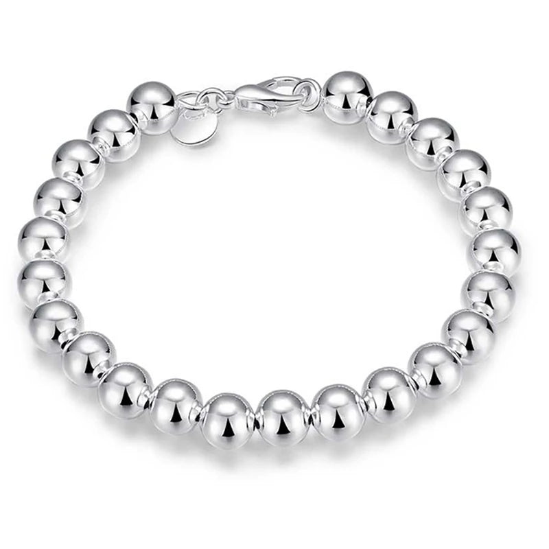 Elegant 925 sterling silver bracelet featuring 8mm hollow ball beads. Perfect for weddings and engagements.