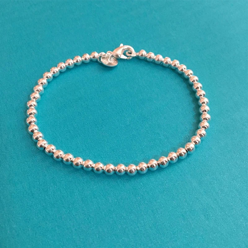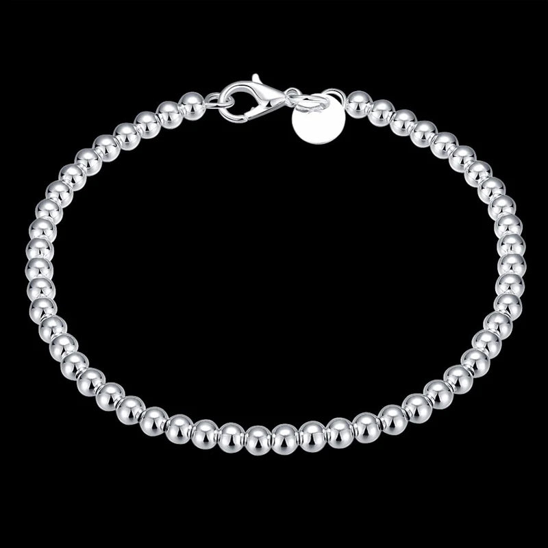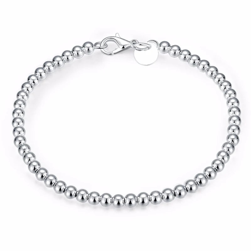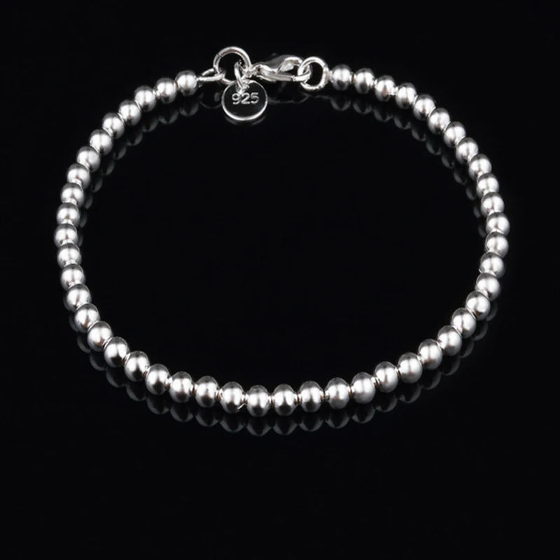 Elegant 925 sterling silver bracelet featuring 4mm smooth round beads. Perfect gift for women.