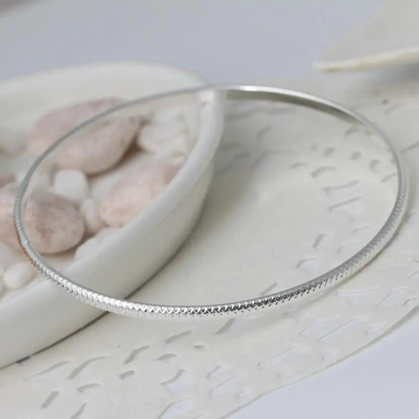 Add a touch of elegance to your outfit with this pair of 925 sterling silver bangle bracelets. Each bracelet is 70MM in diameter, perfect for everyday wear or special occasions.