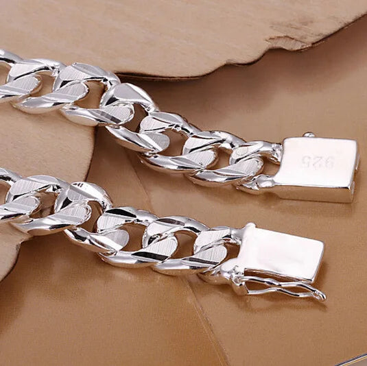 Elevate your style with this high-end 925 sterling silver bracelet featuring a 10MM square gem. Perfect for both men and women.