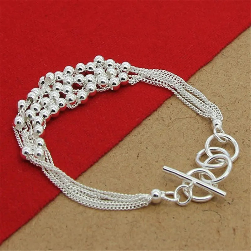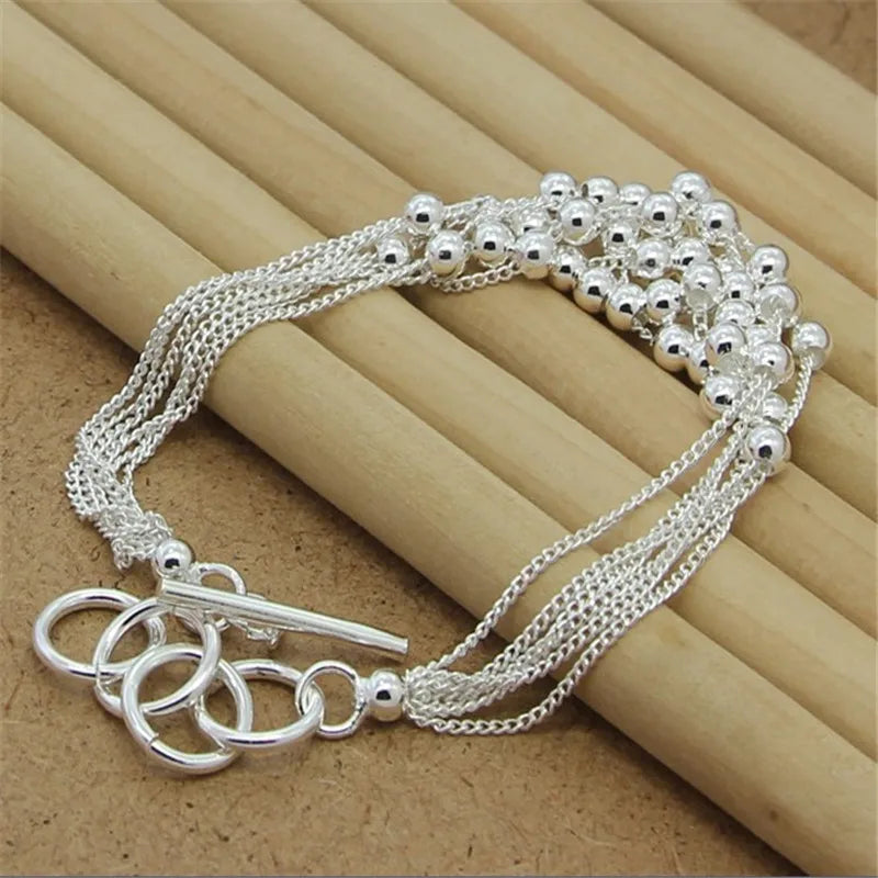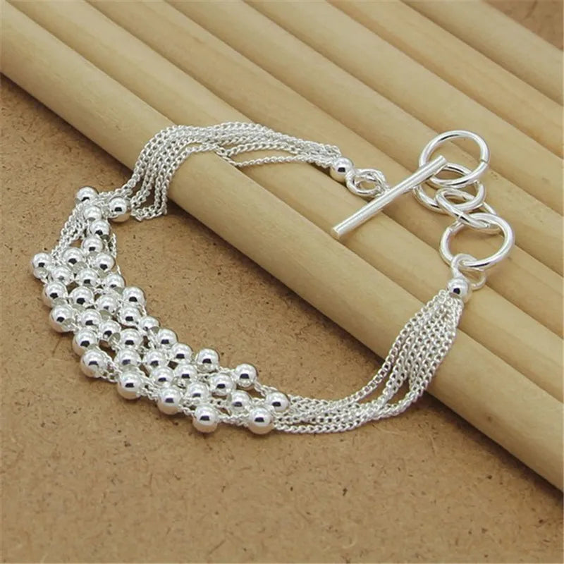 Add elegance to your look with this stunning 925 sterling silver bracelet featuring glossy beads and a secure buckle closure. Perfect for women who appreciate refined charm jewelry.