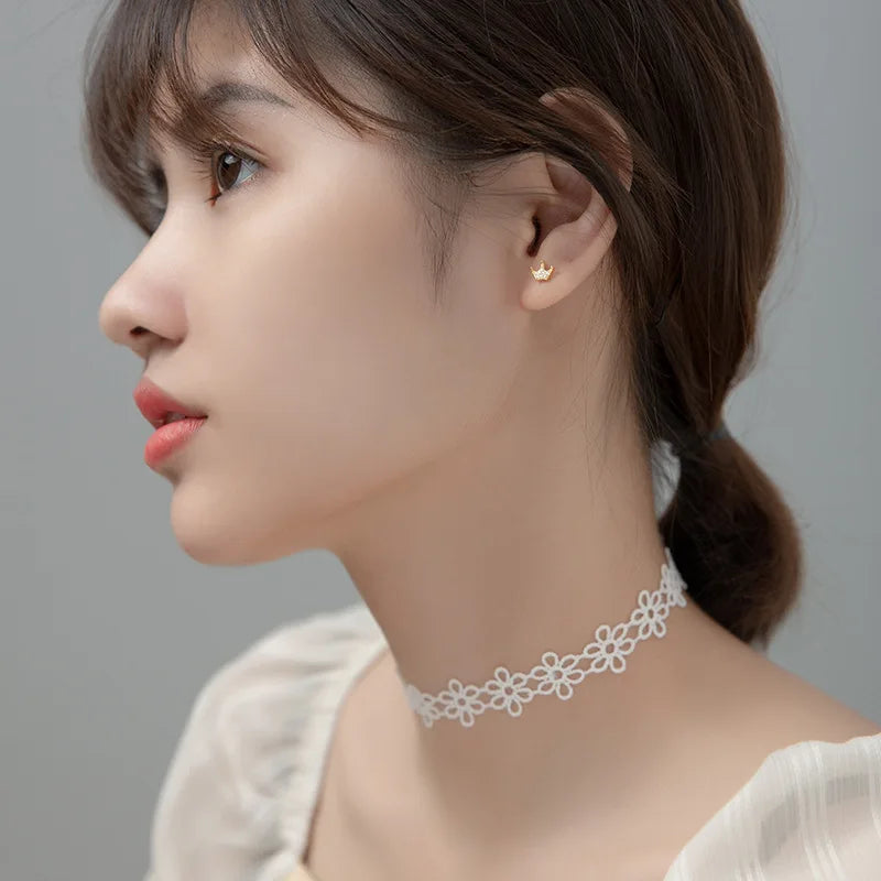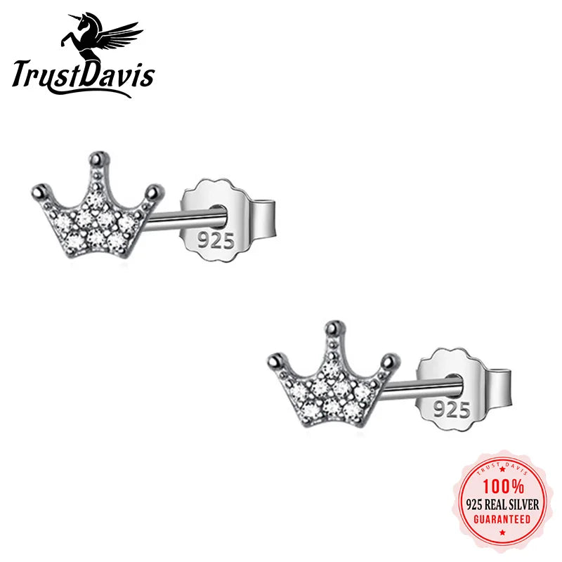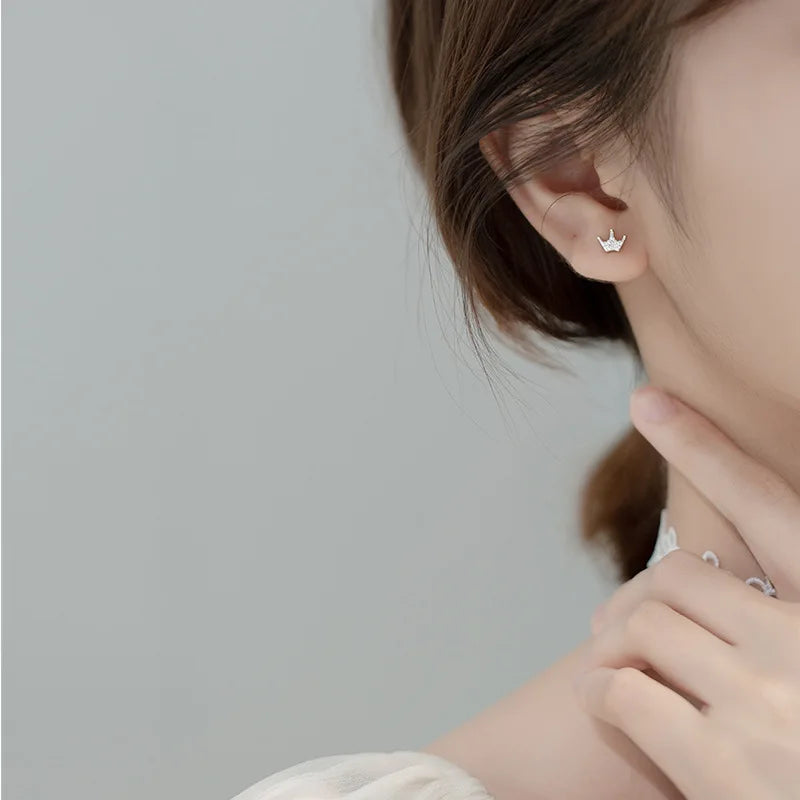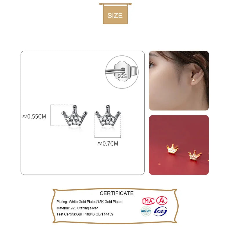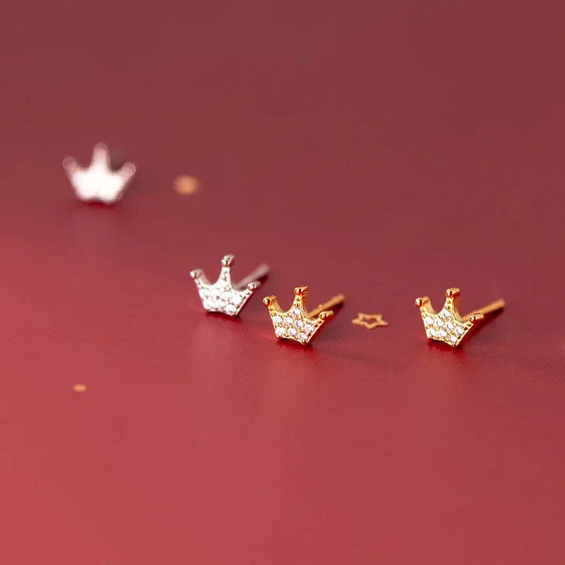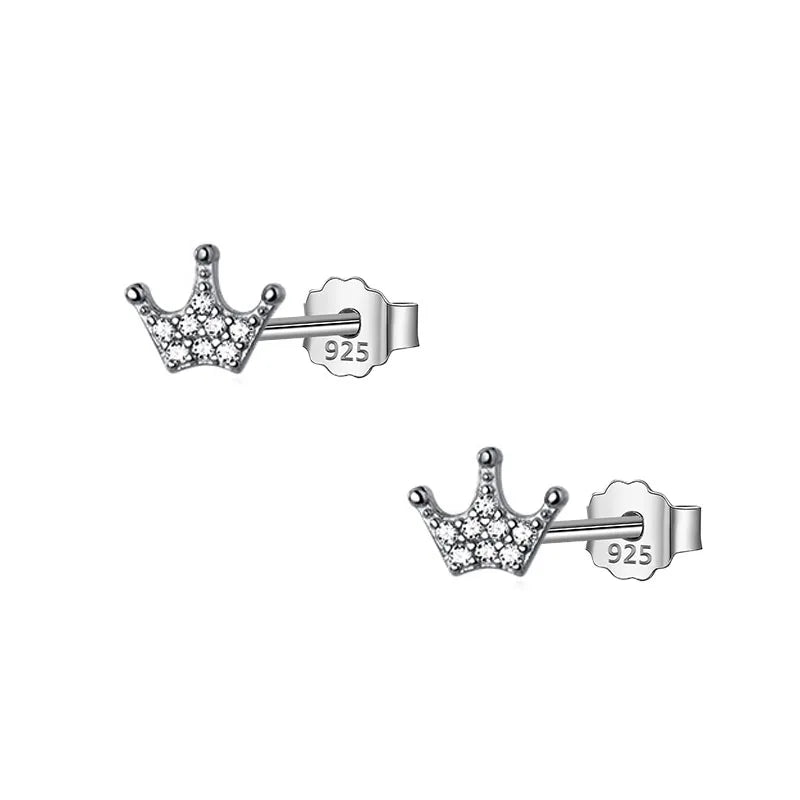 Elegant sterling silver stud earrings featuring a sweet crown design with dazzling CZ stones. Perfect for women, teen girls, kids, and ladies.