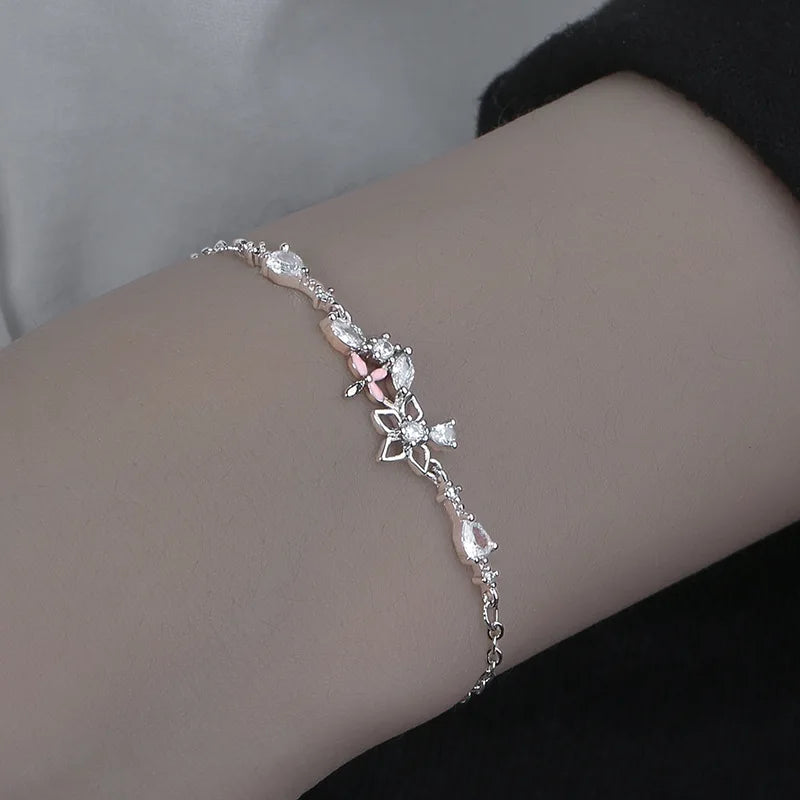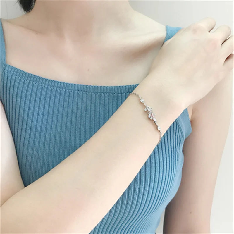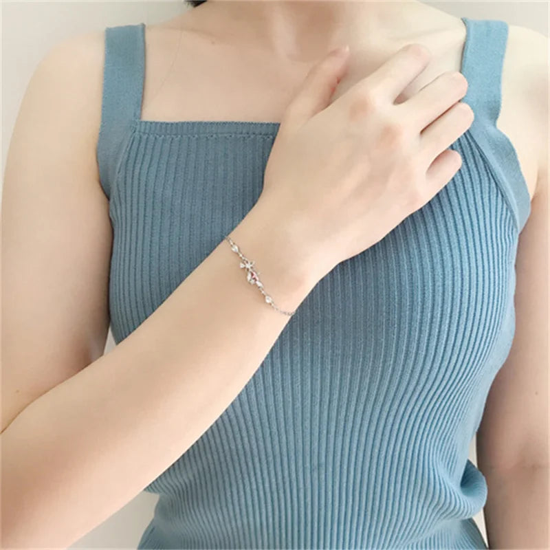 This sweet and fresh bracelet is perfect for students. Made with 925 sterling silver and features a flash diamond flower design.