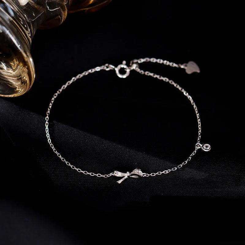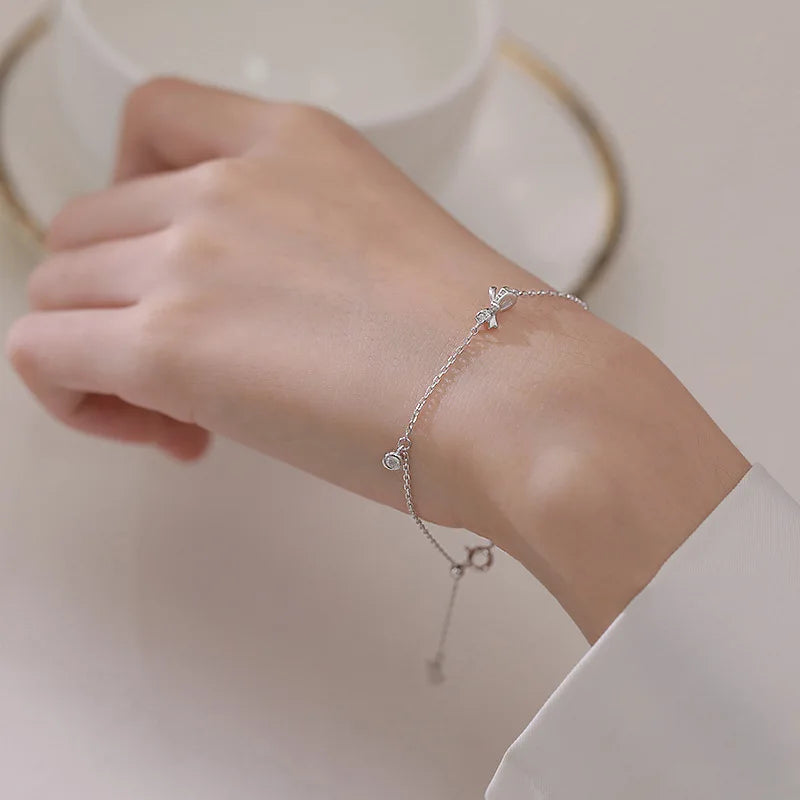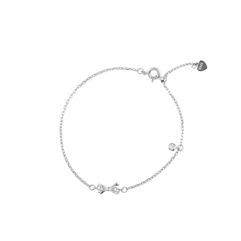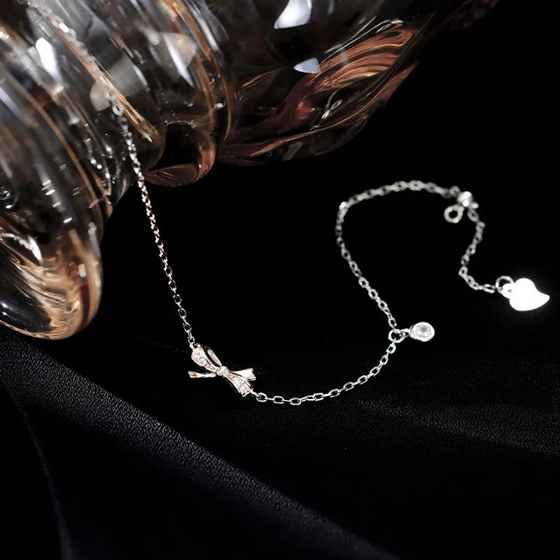 925 Sterling Silver Flash Diamond Bow Bracelet Women&