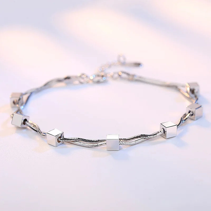 This stunning bracelet is made of 100% 925 sterling silver, featuring a geometric design that adds a modern touch to any outfit. Perfect for birthdays or as a thoughtful gift. Anti-allergy material for sensitive skin.