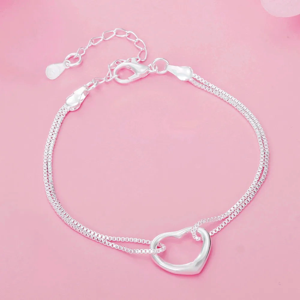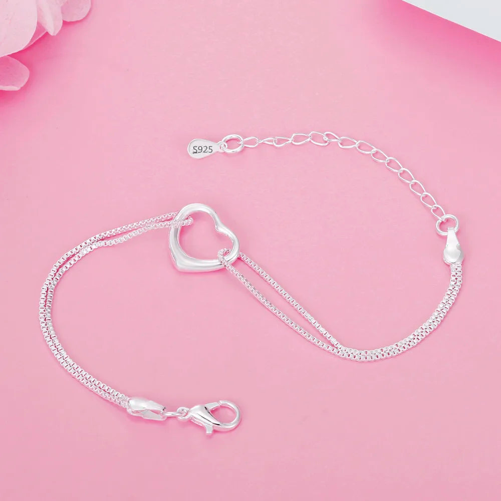 This elegant heart bracelet is crafted from fine 925 sterling silver, perfect for parties, weddings, and engagements. A stunning piece for Christmas gifts.